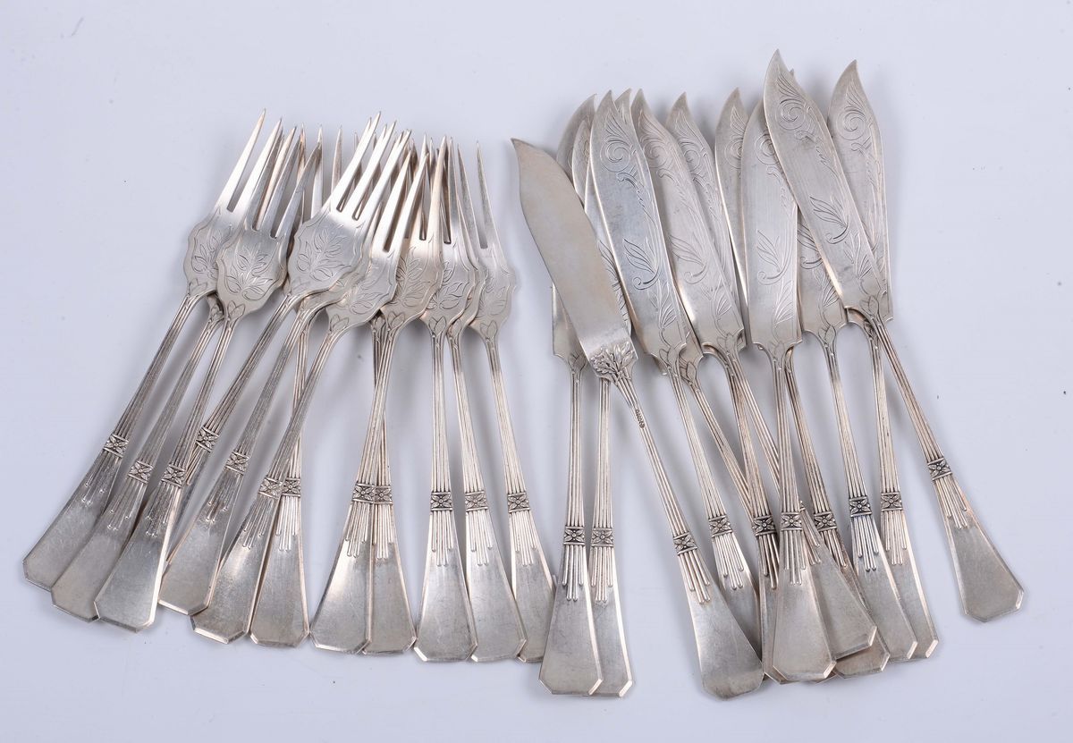 Dodici forchette e dodici coltelli da pesce in argento Liberty