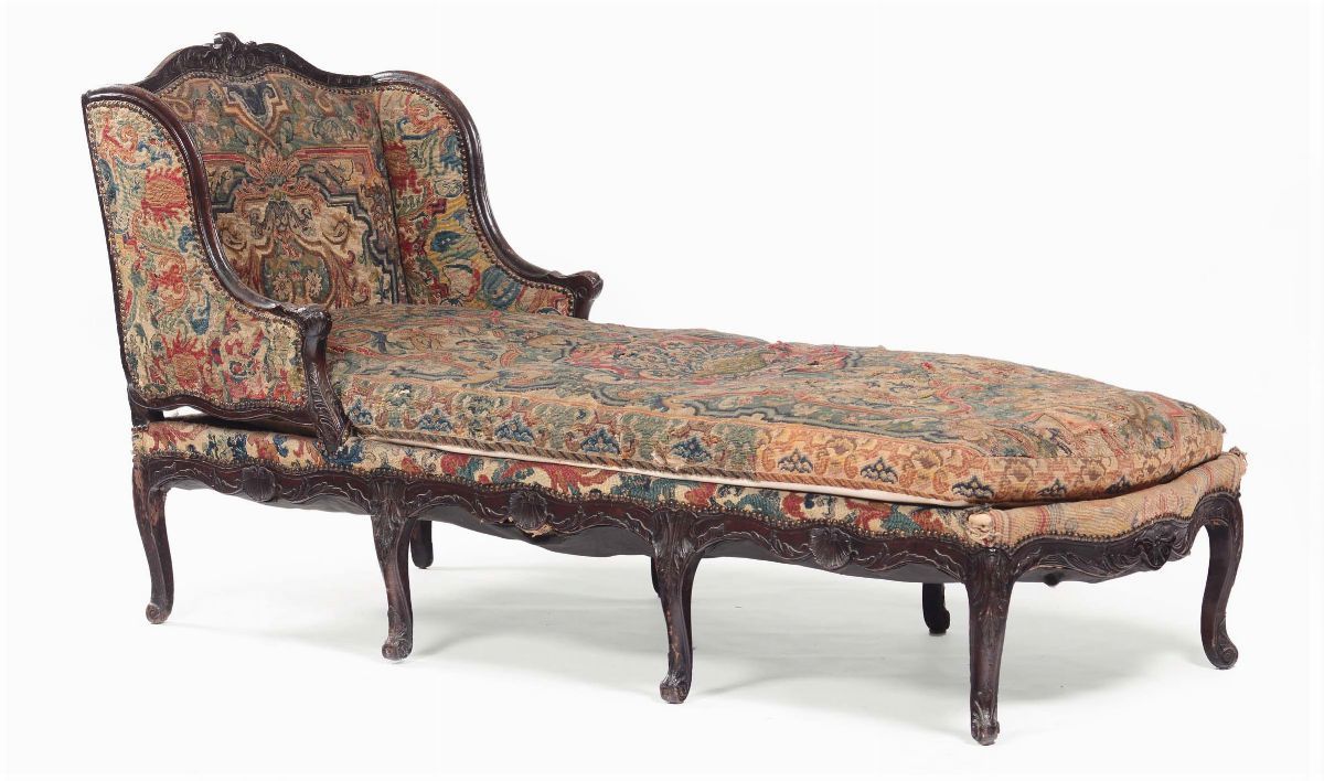 Dormeuse in legno intagliato con tessuto piccolo punto, XIX secolo