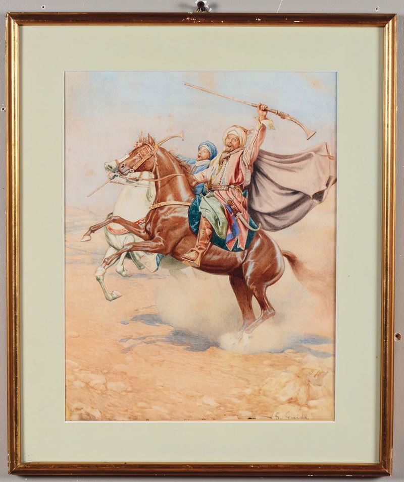coppia di acquerelli su carta, uno firmato G.Guidi, cm 46x36