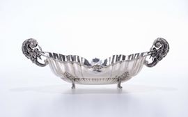 poggiante su quattro piedini a ricciolo, gr. 2100, cm 28x26