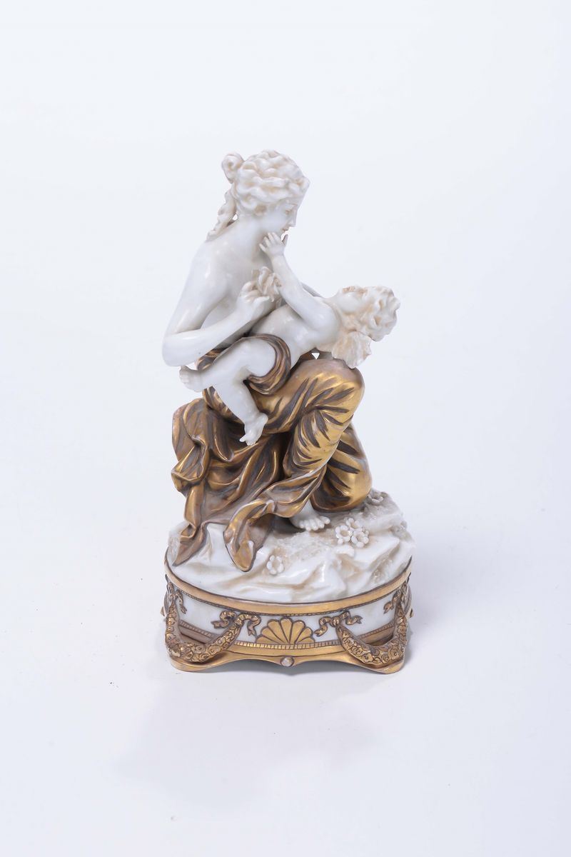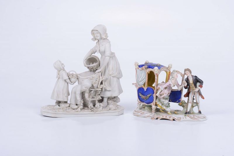 Lotto di tre gruppi in porcellana e bisquit diversi
