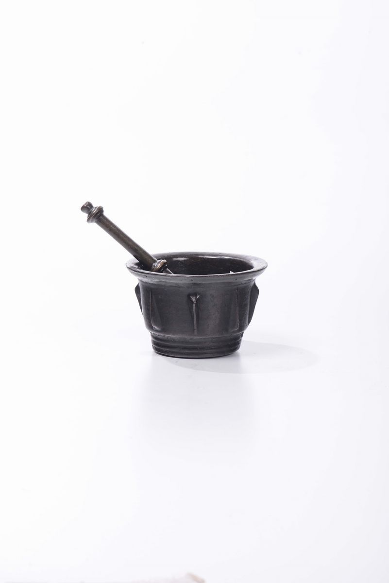 Mortaio in bronzo costolato con pestello, XVI-XVII secolo