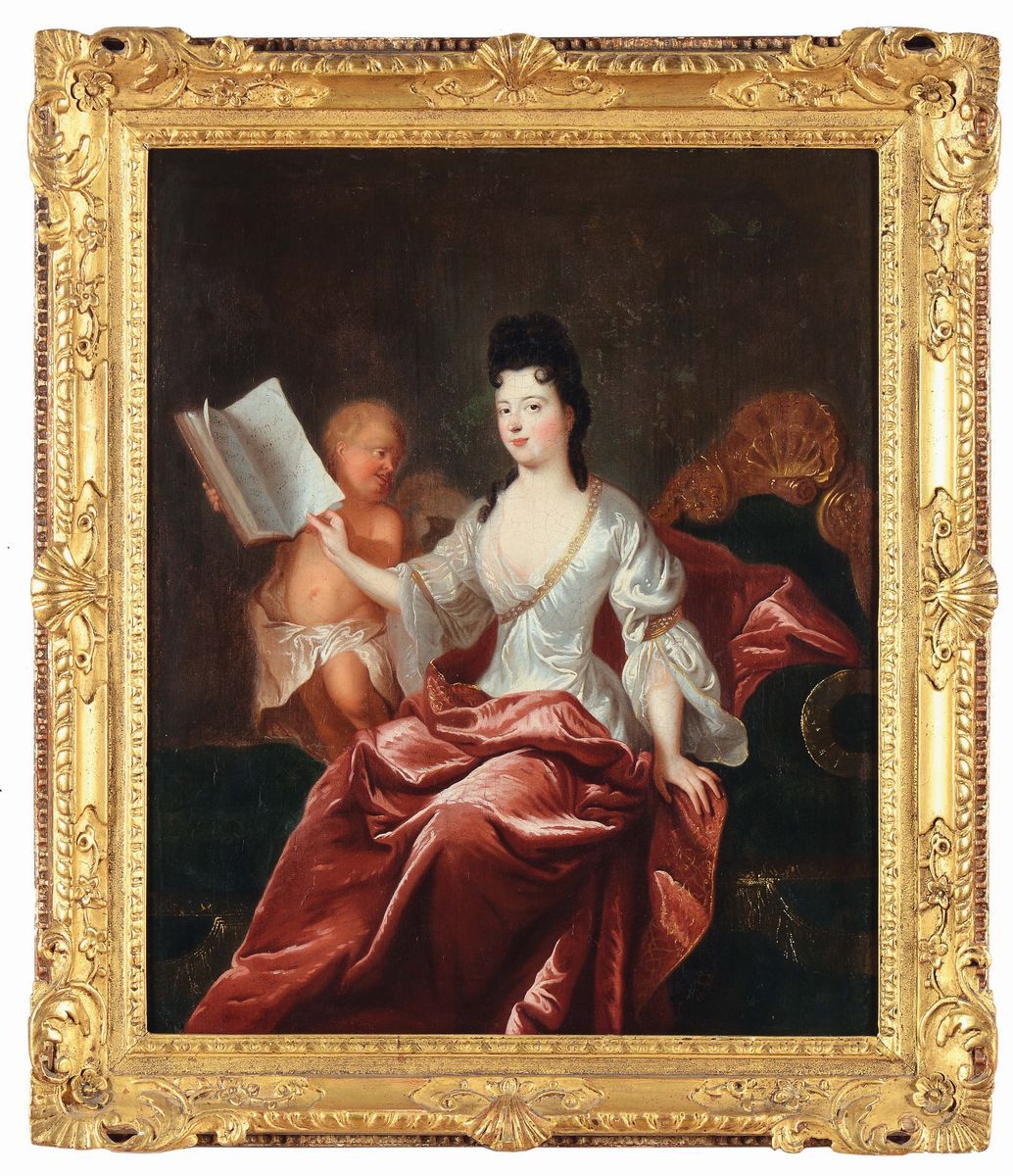 Ritratto di figura femminile seduta con putto