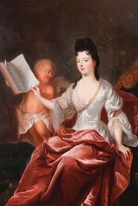 Nicolas de Largilliere (1656-1746), nei modi di Ritratto di figura femminile seduta con putto