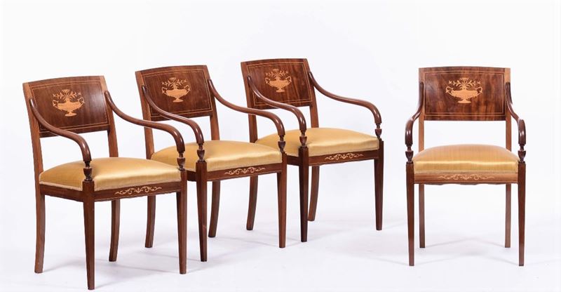 Salotto in mogano inarsiato, Danimarca XIX secolo