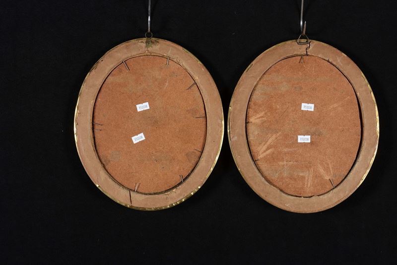 Coppia di paesaggi con figure in riva al fiume