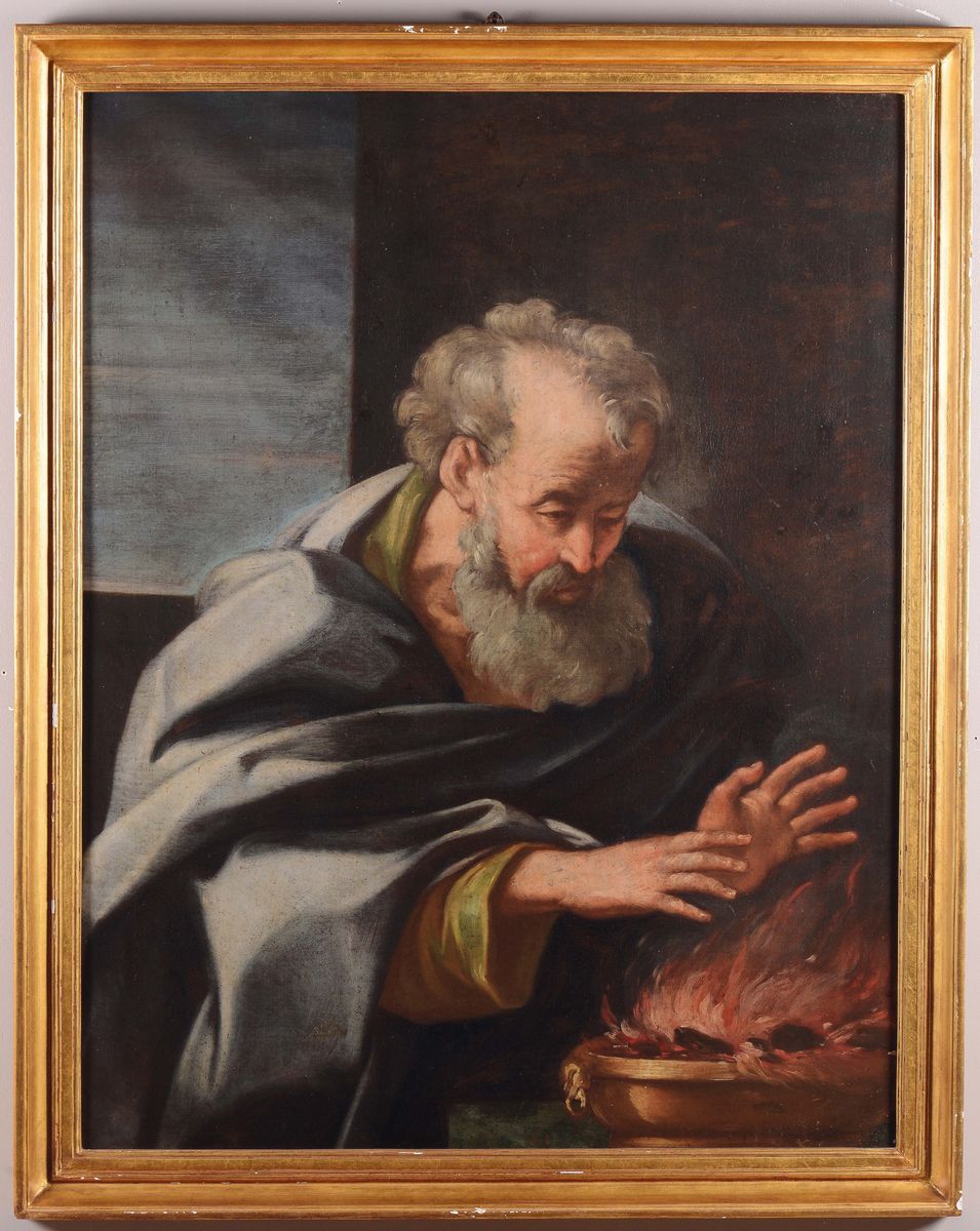 Scuola del XVIII secolo Ritratto di Santo davanti a braciere