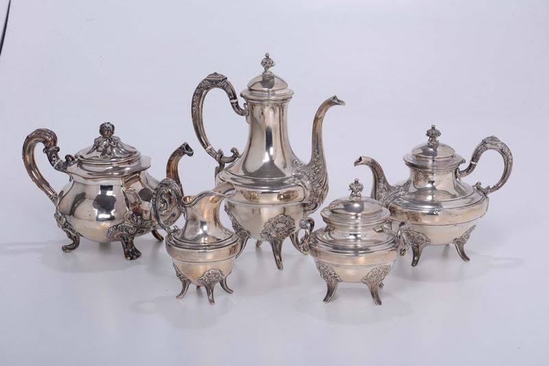 Servizio da tè e caffè in argento in stile barocchetto
