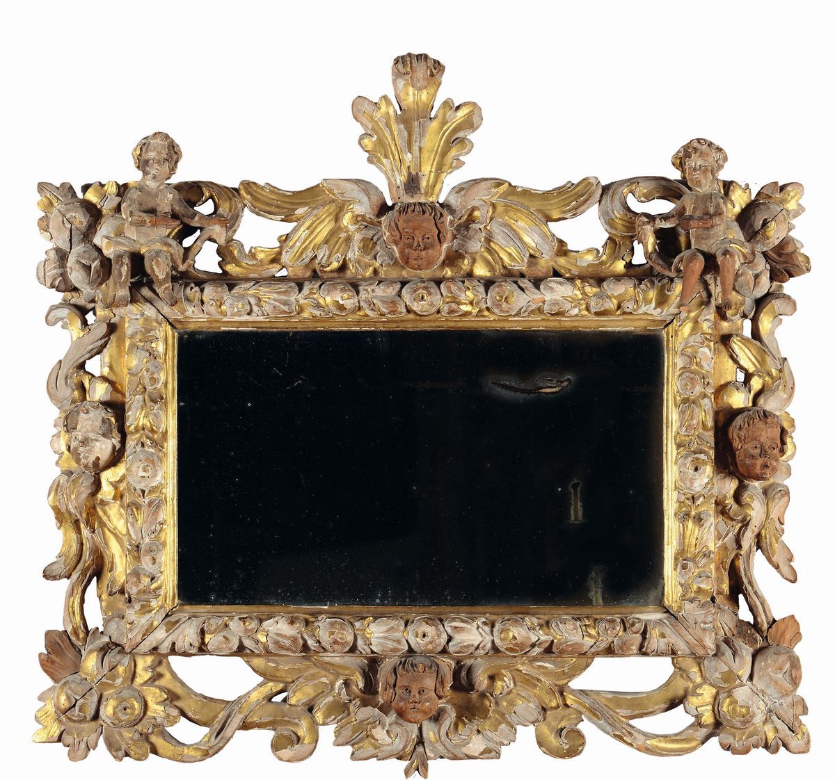 Specchiera in legno dorato ed intagliato, XVII secolo