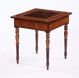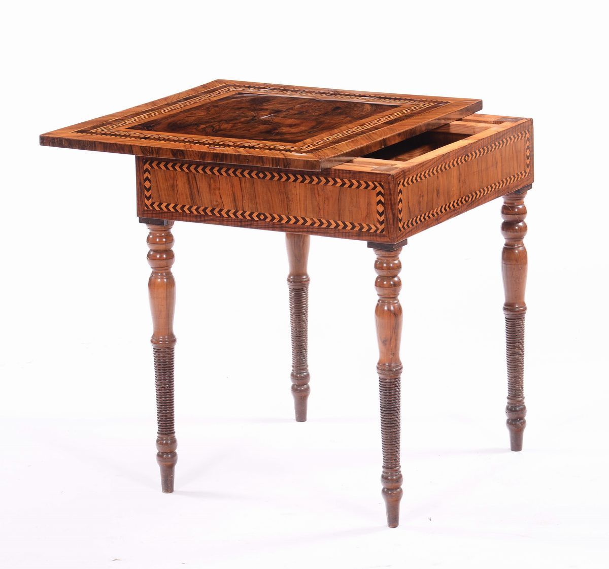 Tavolino senese lastronato ed intarsiato alla “Fantastici”, inizio XIX secolo