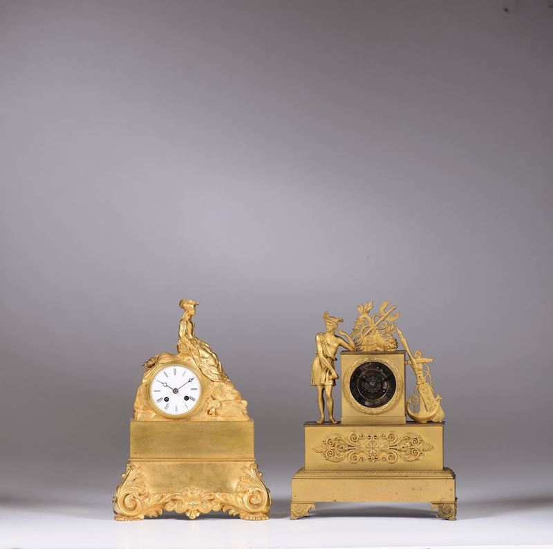 A Lot of 2 ormolu Charles X table clocks, 19th century