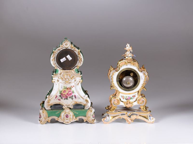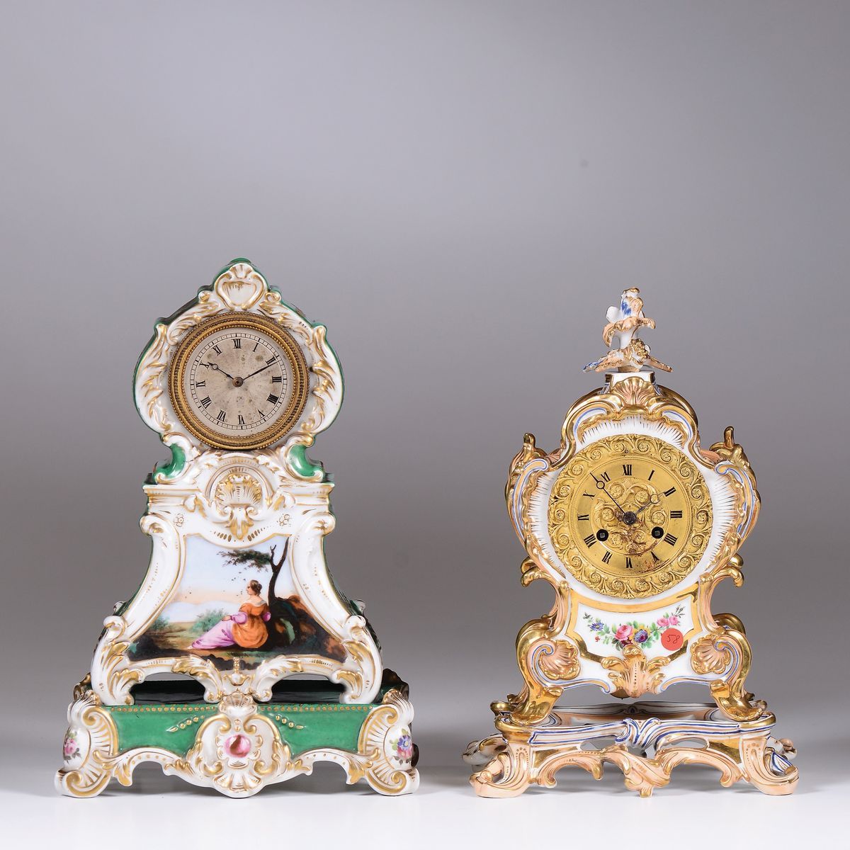 A Lot of 2 polychrome porcelain clocks, 19th century