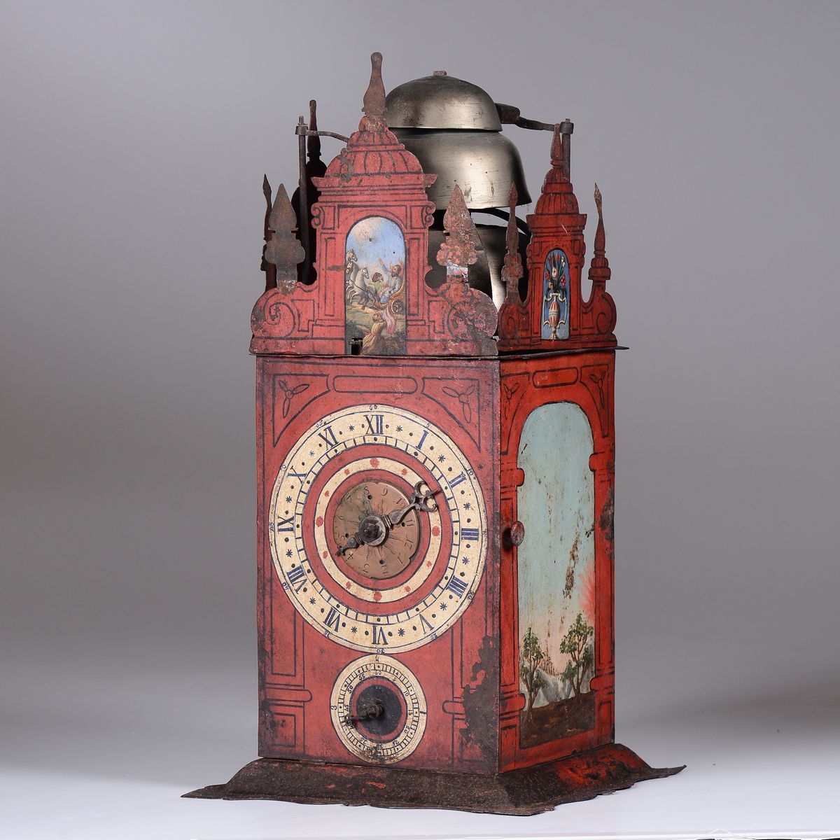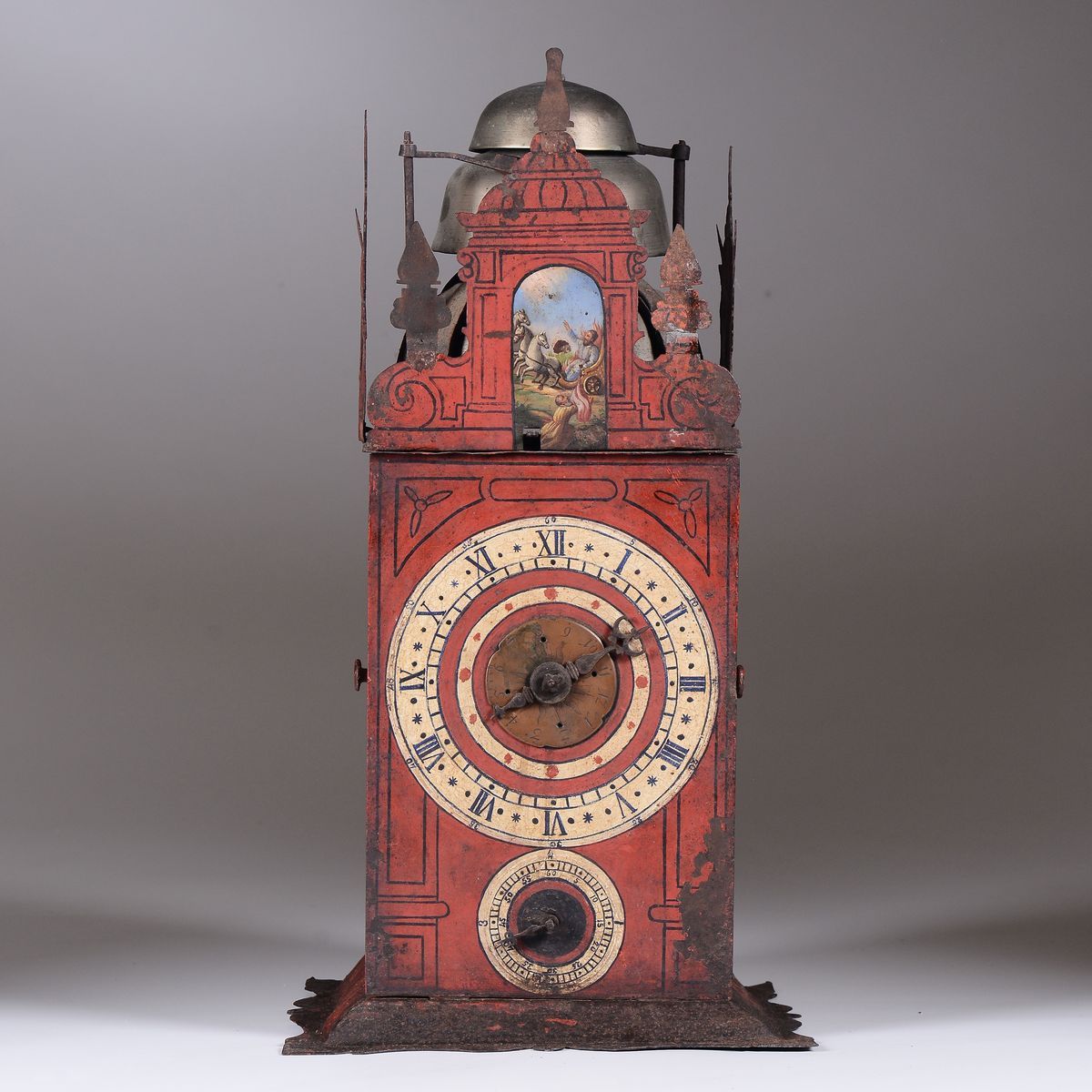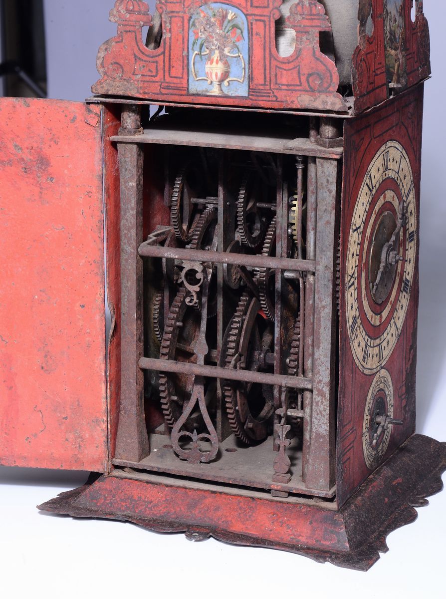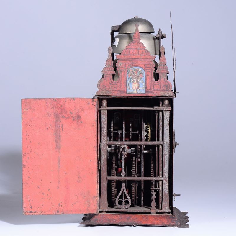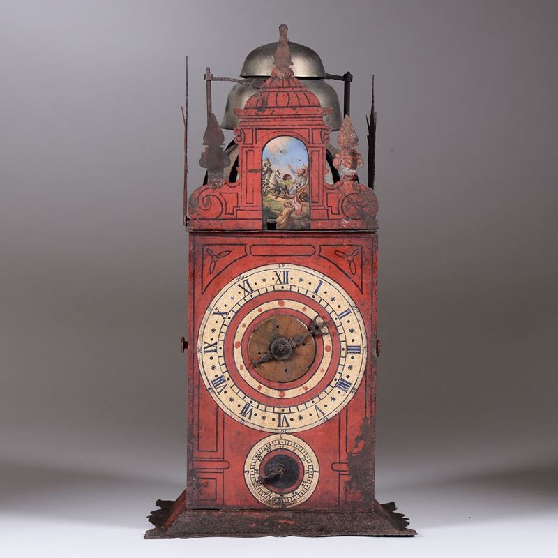 A painted metal clock, Germany, 17th century