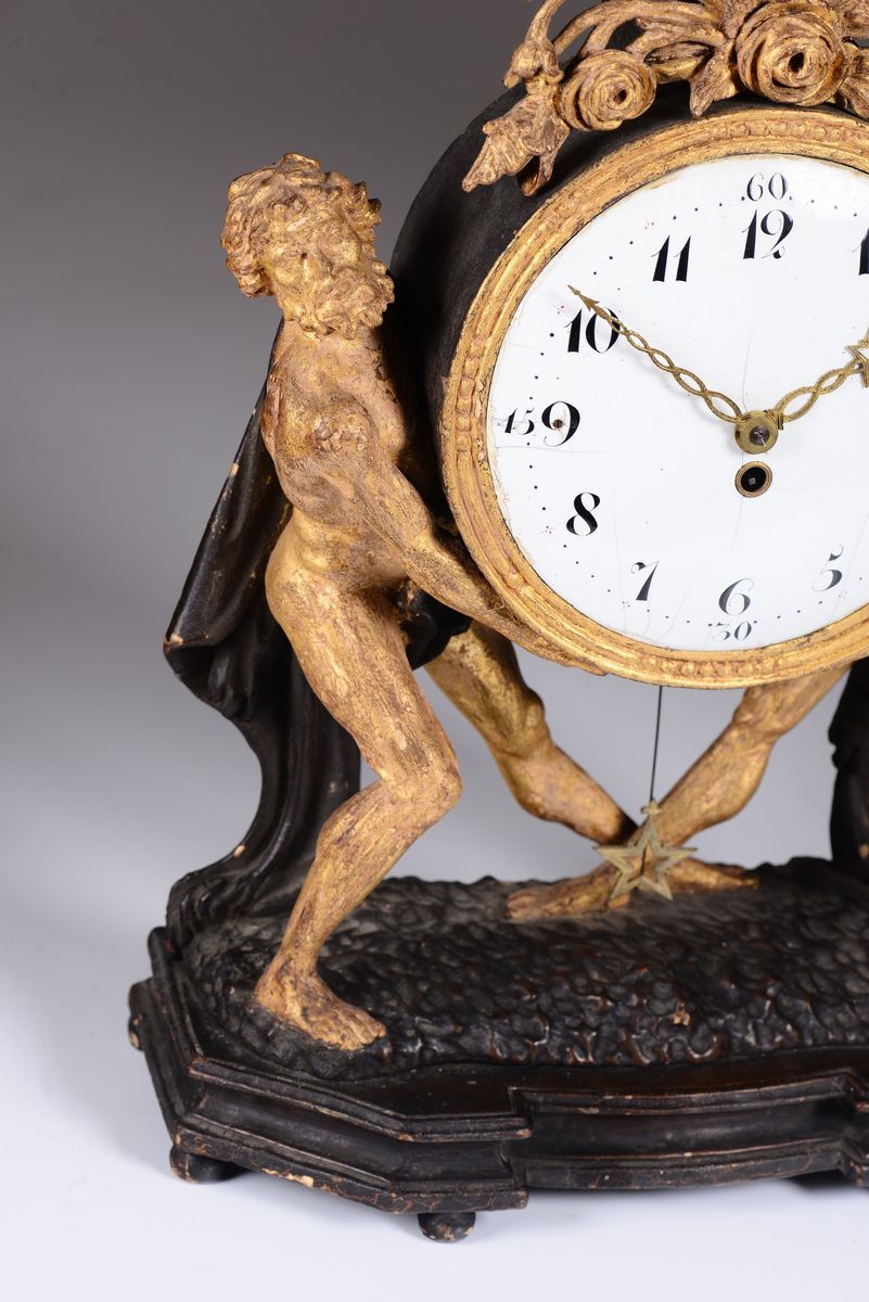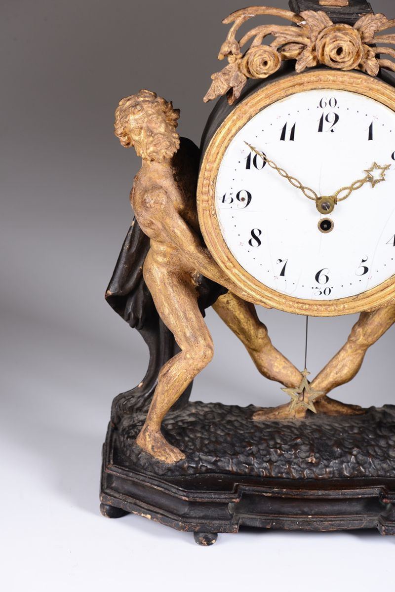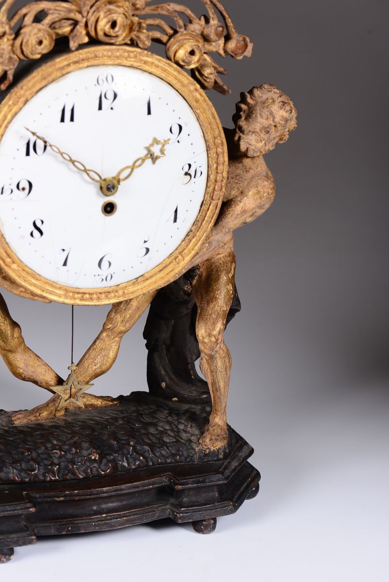 A wooden carved, lacquered and gold-gilt table clock, Vienna, 19th century