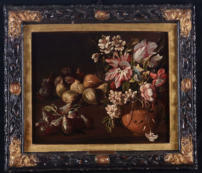 Andrea Belvedere (Napoli 1652-1732), attribuito a Natura morta con fiori e frutta