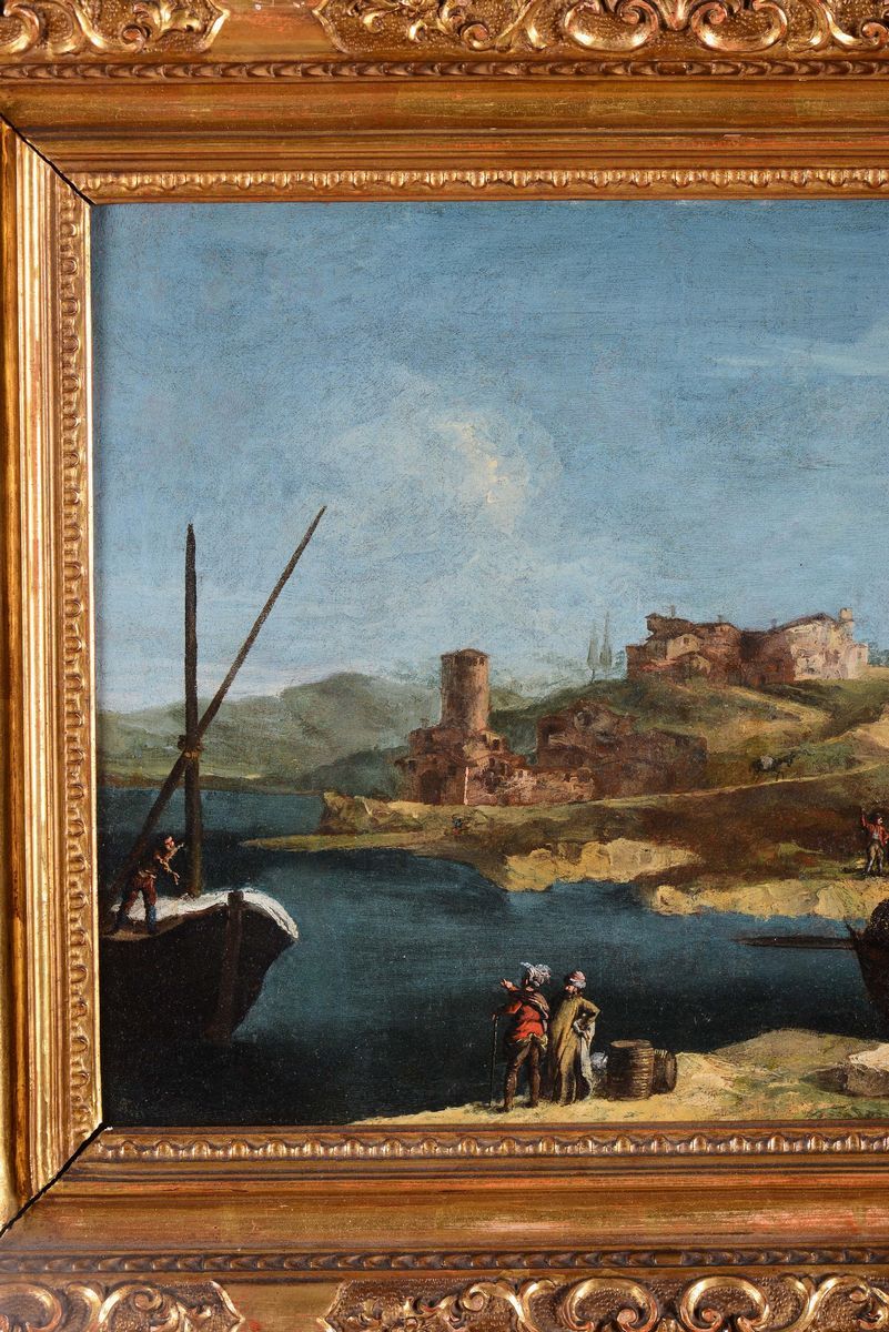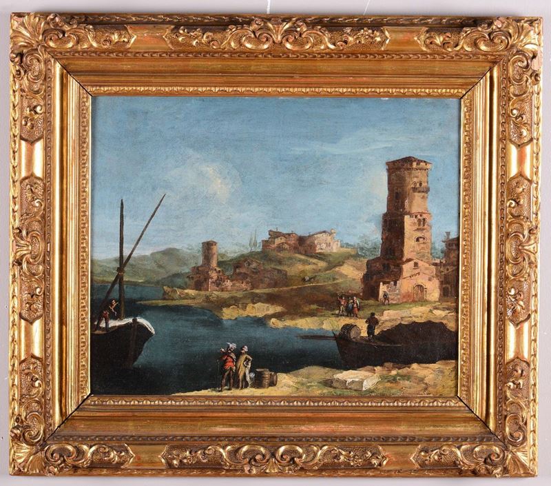 Francesco Albotto (Venezia 1721 - 1757) Scorcio di costa con torrione
