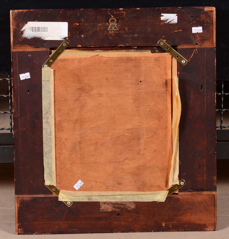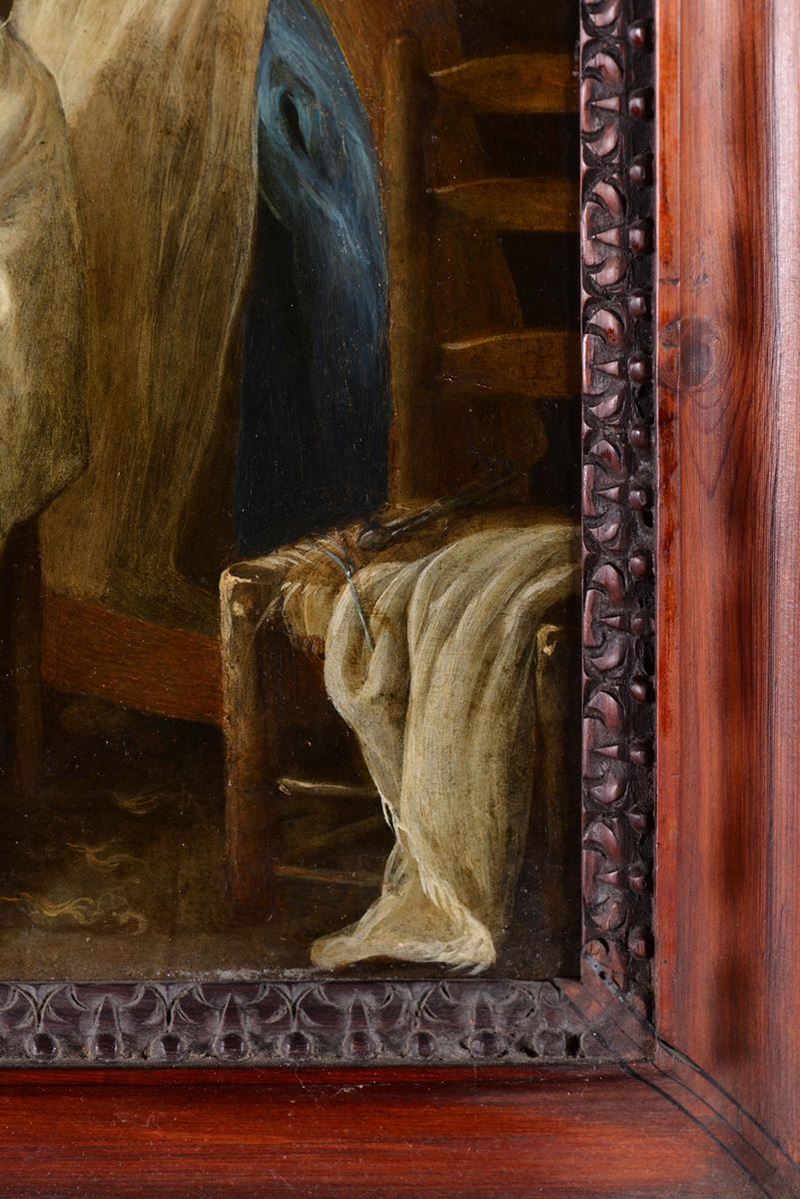 olio su rame, cm 32x27, siglato sulla sedia destra