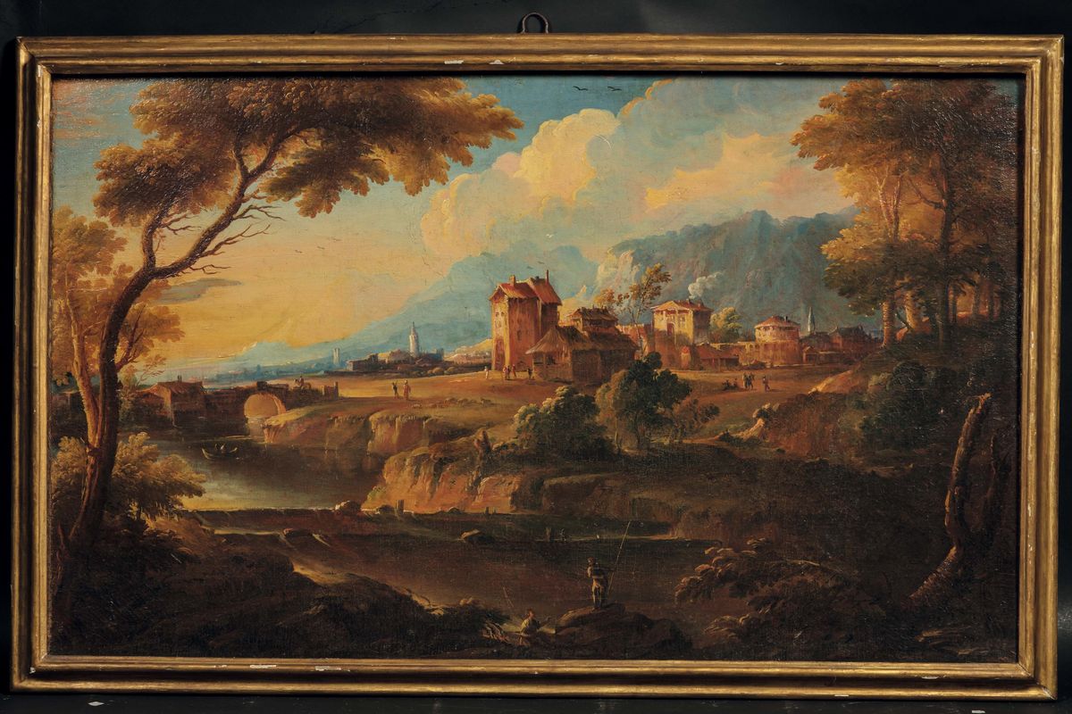 Giuseppe Roncelli (1669-1729) Paesaggio con incendio Paesaggio con architetture