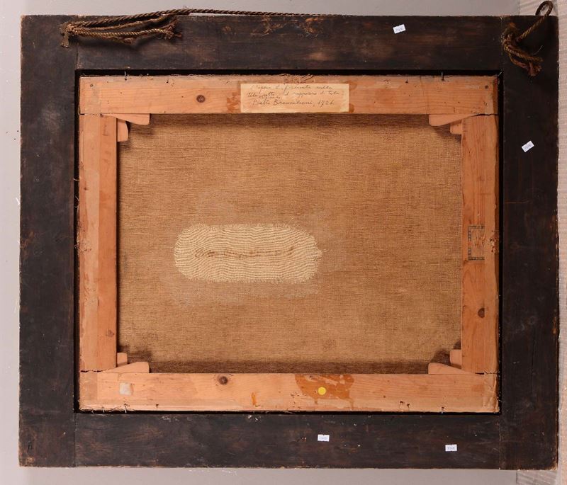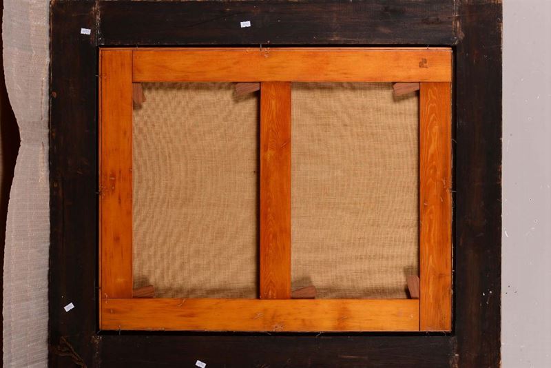coppia di dipinti ad olio su tela, cm 65x8, in cornici dorate