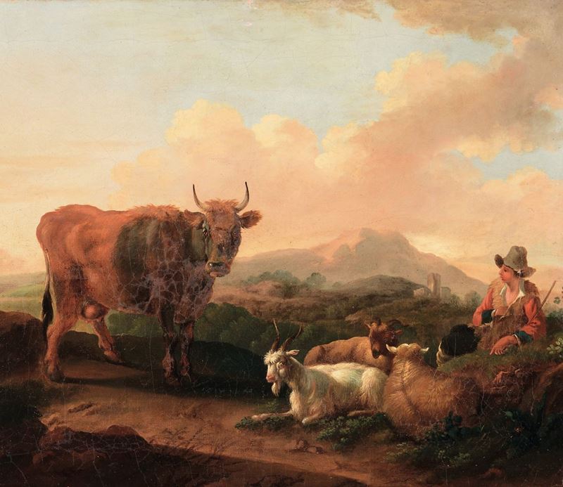 Scuola romana del XVIII secolo Paesaggio con pastore ed armenti Paesaggio con pastore ed armenti