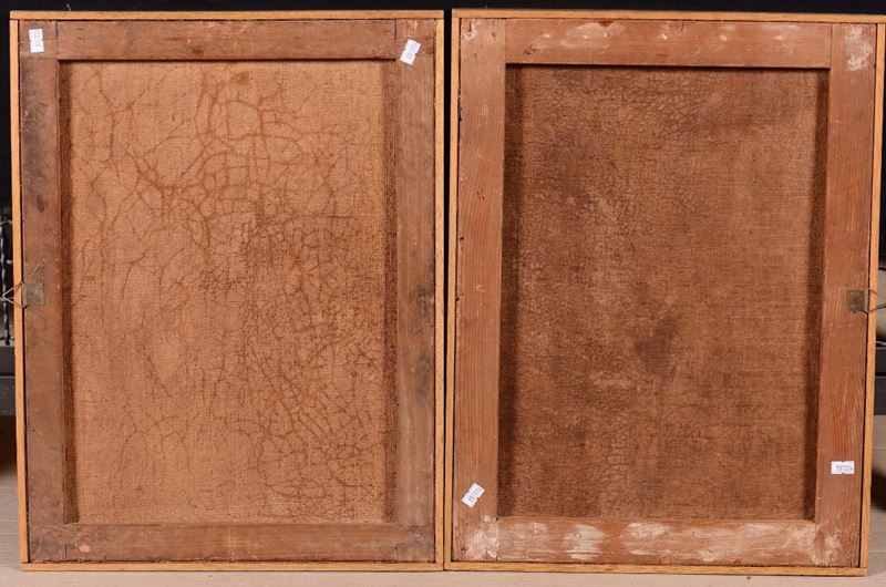 coppia di dipinti ad olio su tela, cm 38x51,5