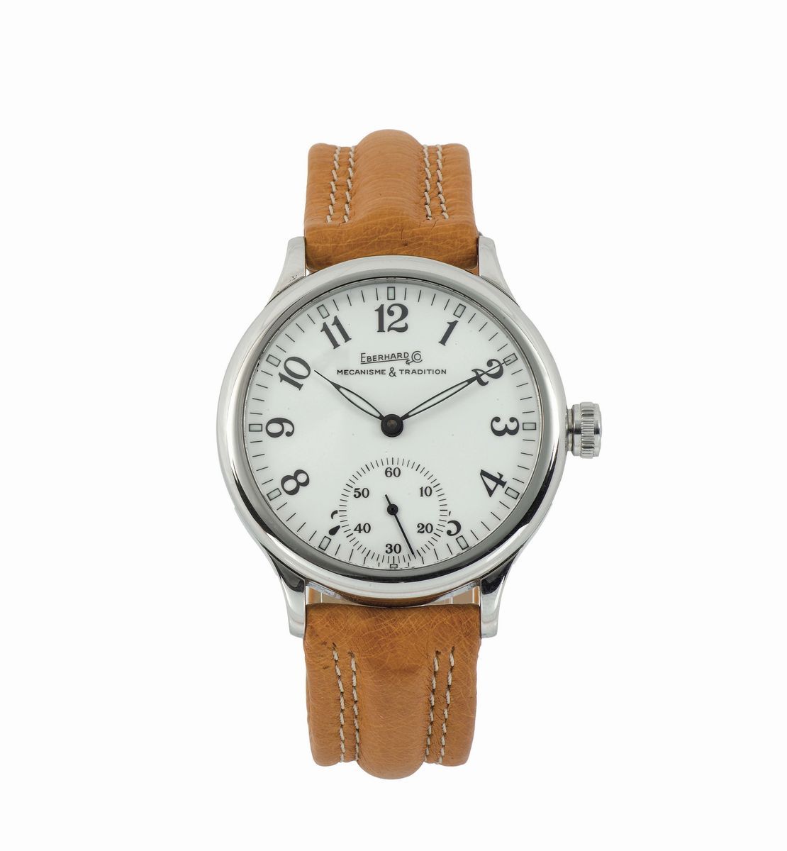 EBERHARD, Traversetolo, case No. 21020VZ, Ref. 3489, fine, stainless steel wristwatch with a steel original buckle. Accompanied by the original box and Guarantee. Sold in 2008
