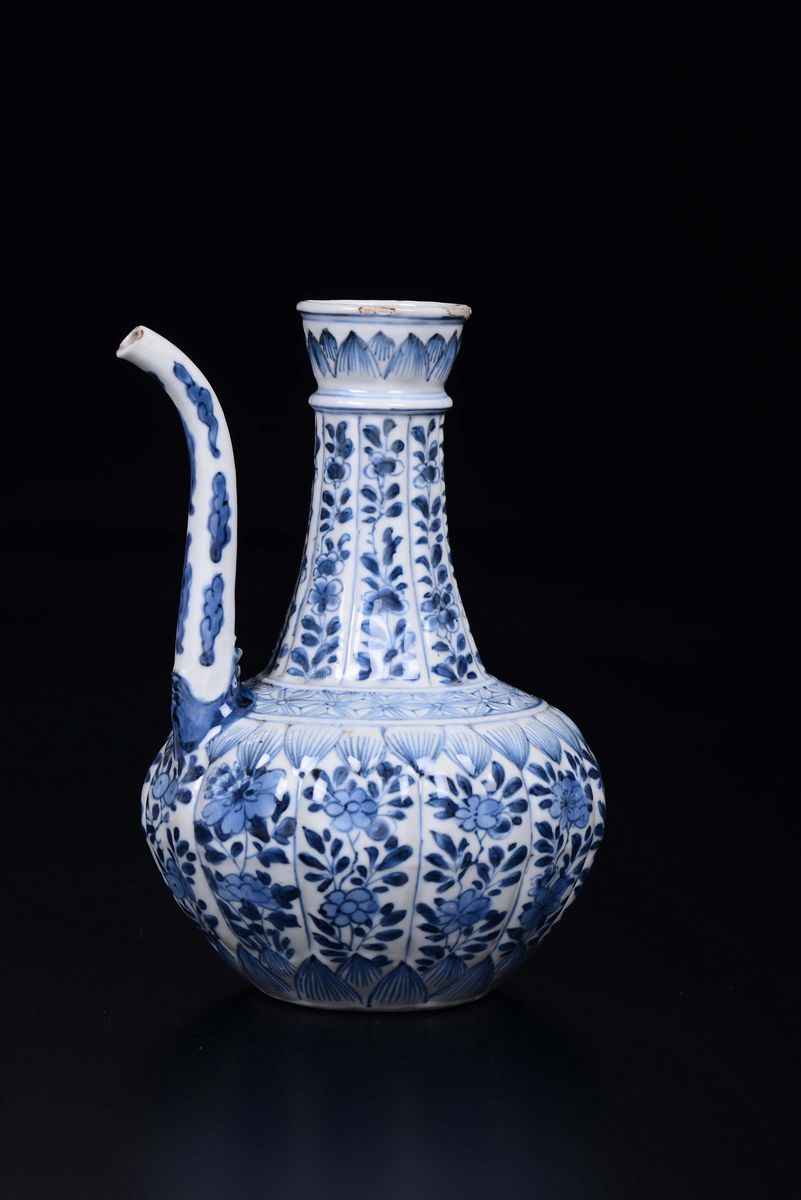 A blue and white ewer with florel decoration, China, Qing Dynasty, Kangxi Period (1662-1722)