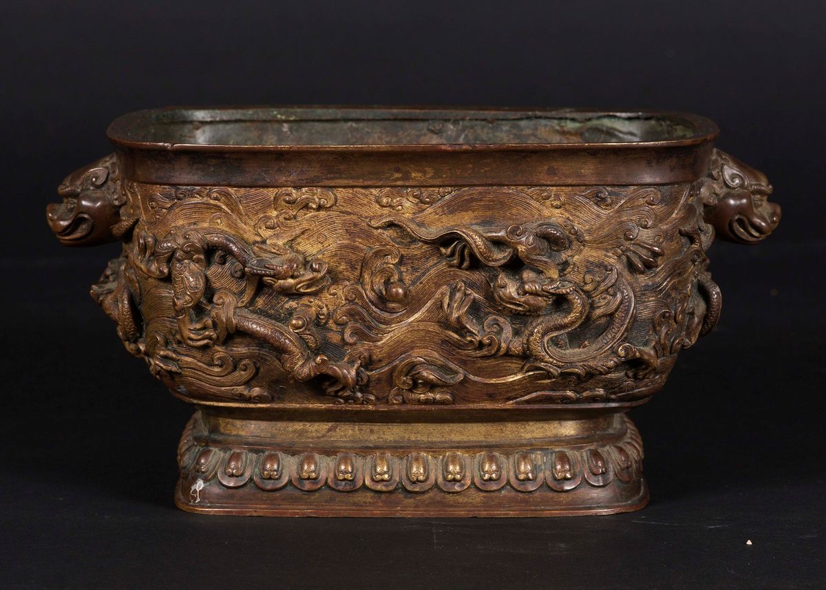 A bronze censer with dragons in relief, China, Qing Dynasty, Qianlong Period (1736-1795)