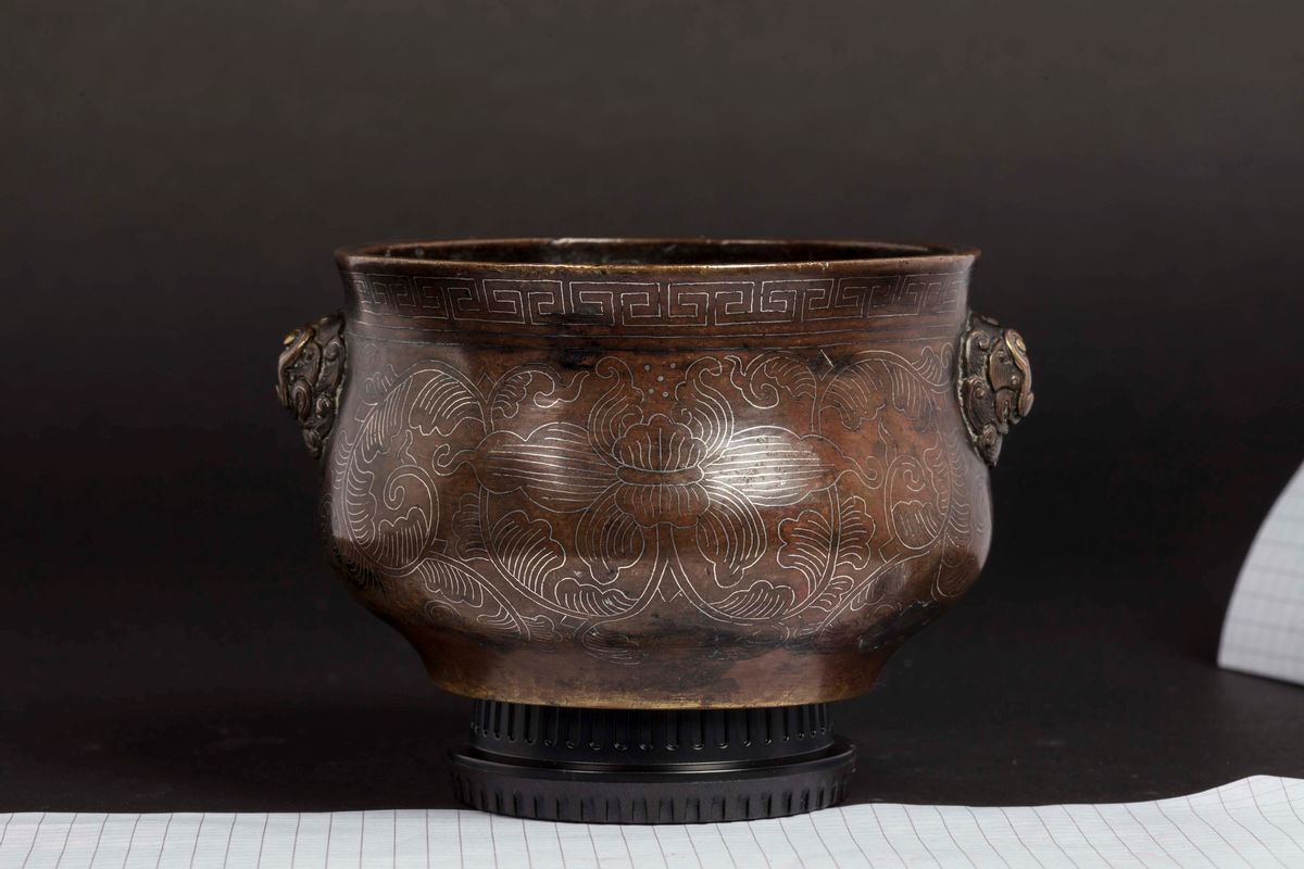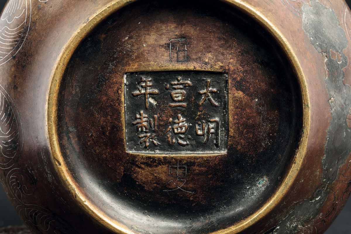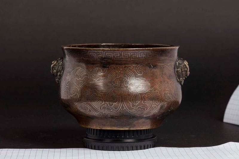 A bronze Shi Sou censer with silver inlaid, China, Qing Dynasty, late 17th century