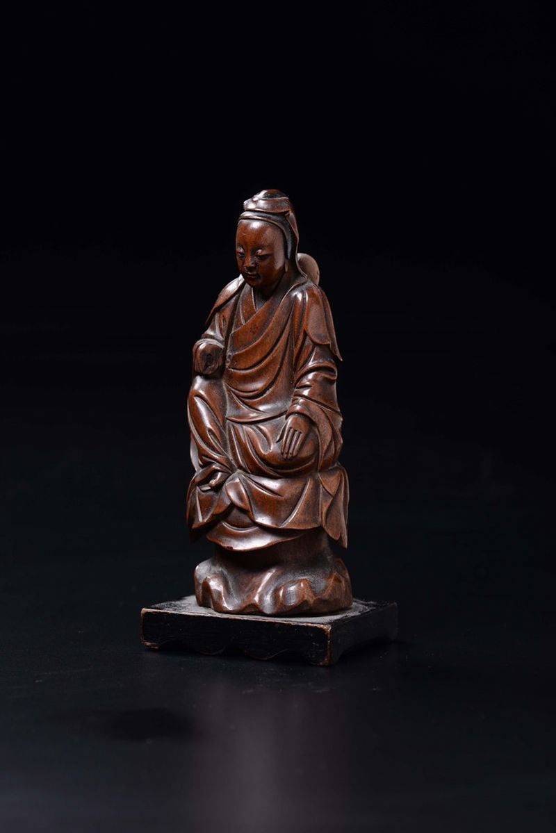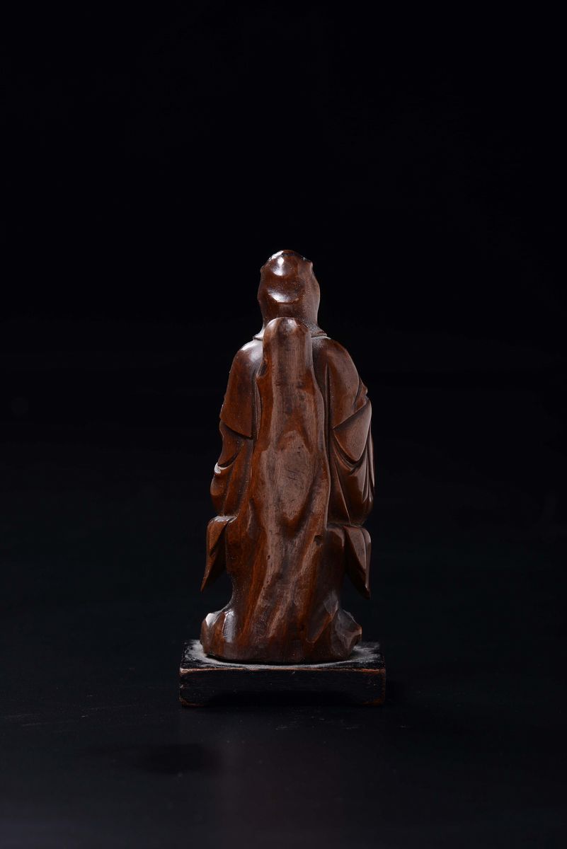 A carved bamboo figure of wise man seated on a rock, China, Qing Dynasty, 18th century