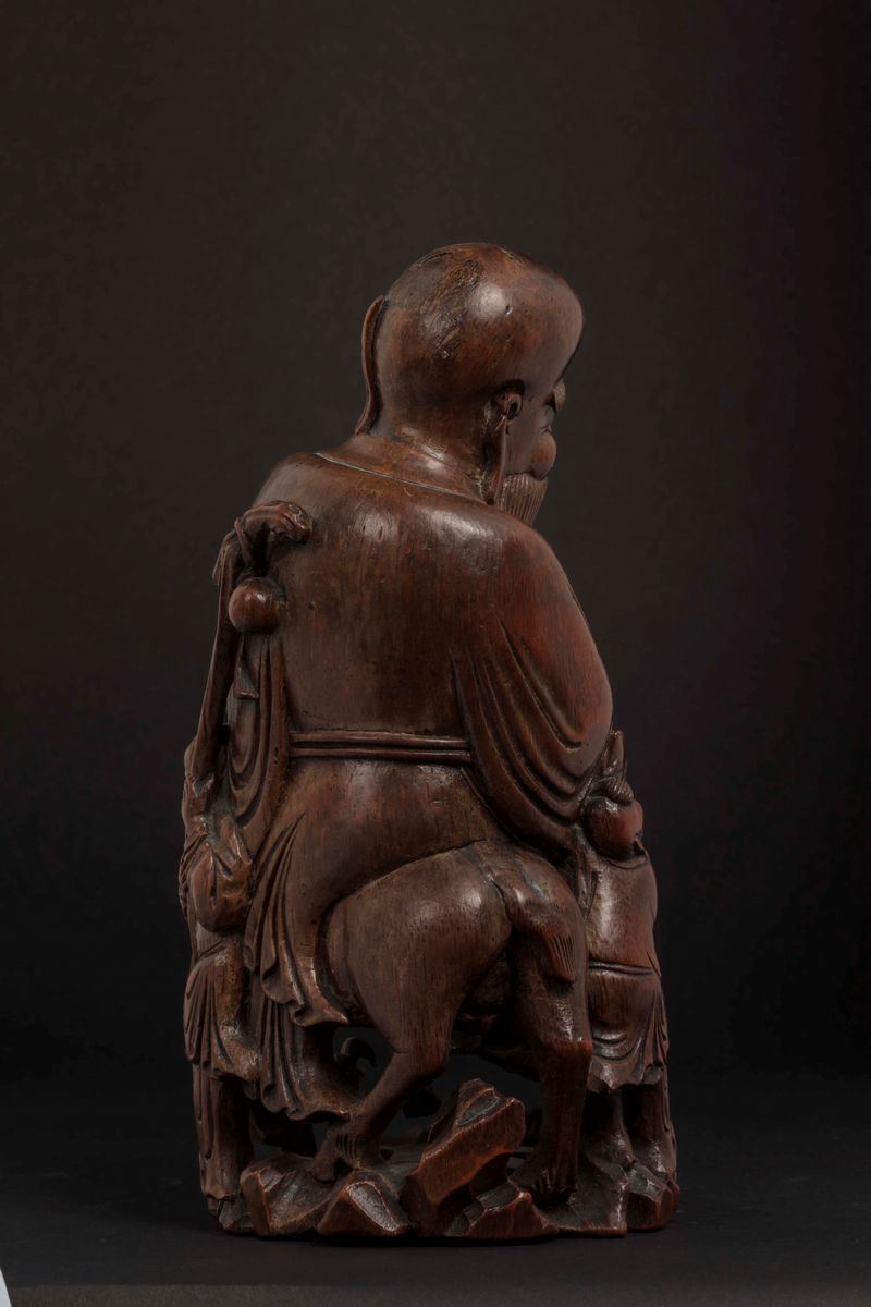 A carved bamboo Shoulao with peach seated on a deer and child group, China, Qing Dynasty, 18th century