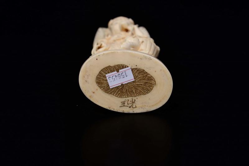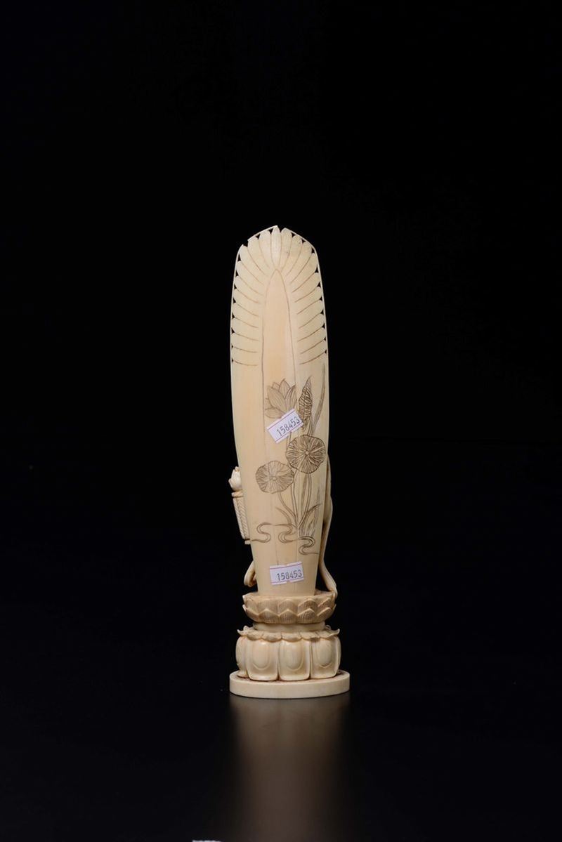 A carved ivory figure of goddess with aura on lotus flower, China, early 20th century