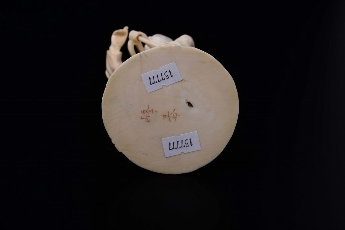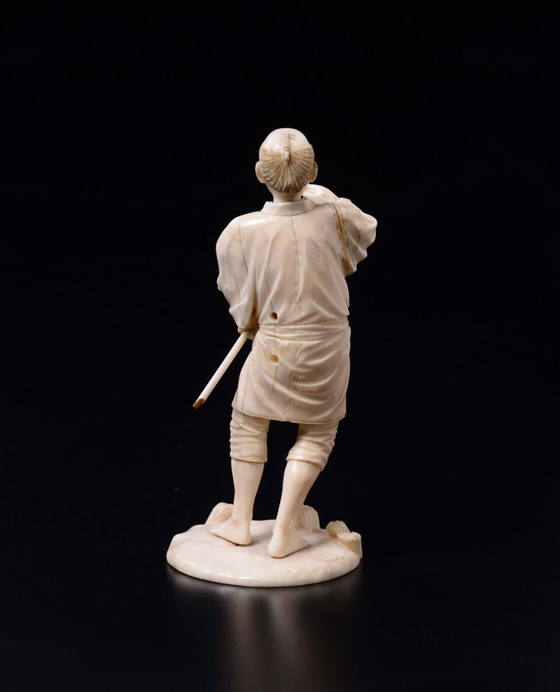 A carved ivory figure of peasant with pitchfork, Japan, early 20th century