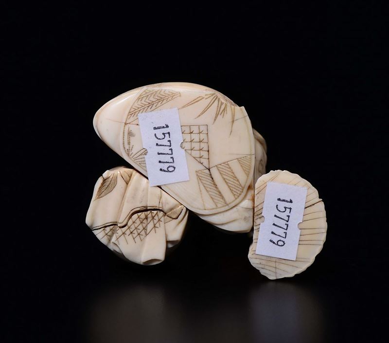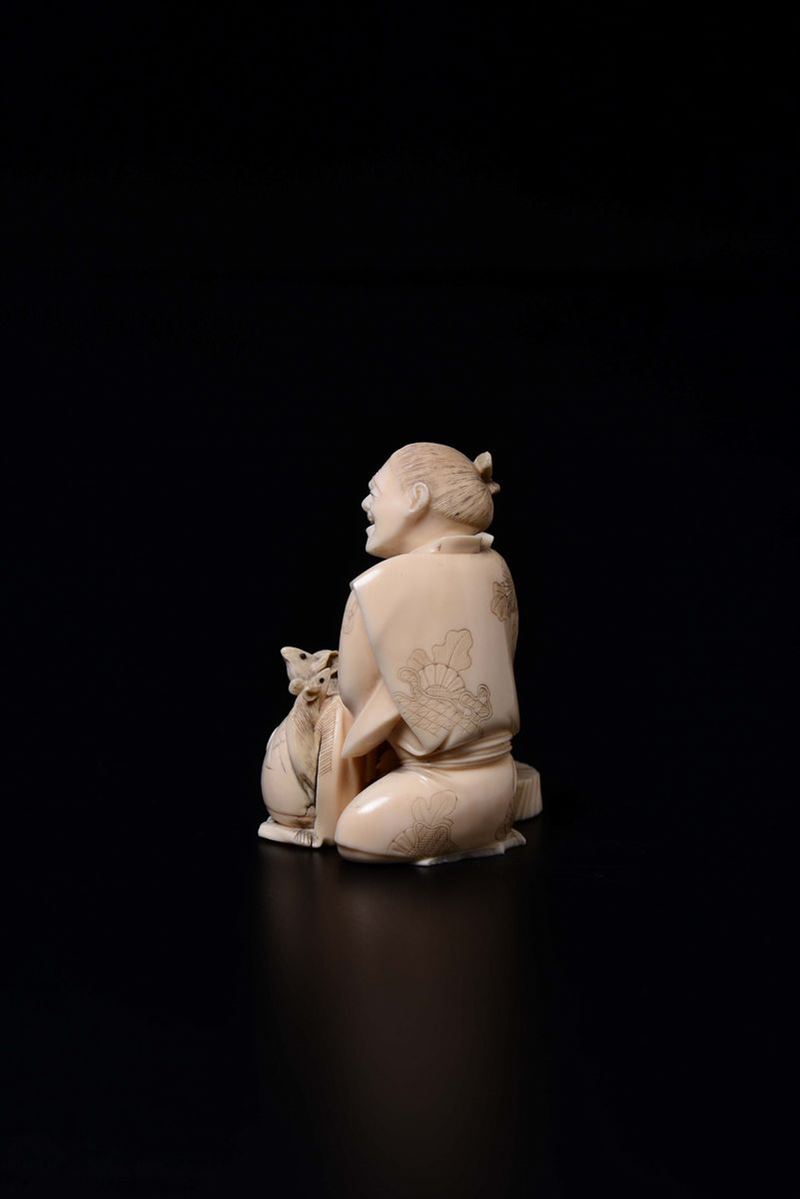 A carved ivory figure of smith with small mice, Japan, early 20th century
