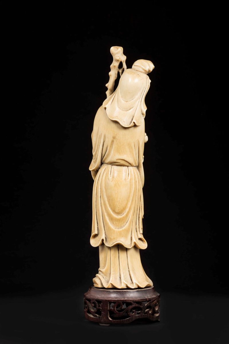 A carved ivory figure of wise men with stick and flowering branch, China, Qing Dynasty, late 19th century