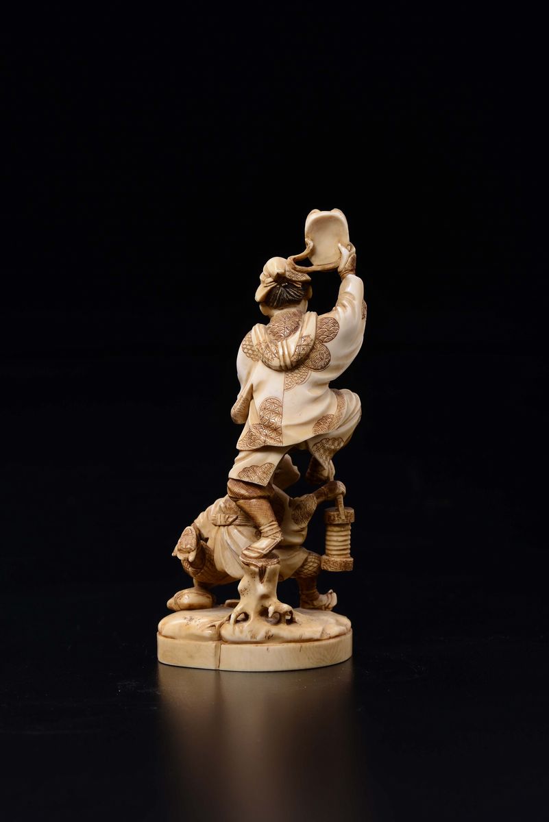 A carved ivory group of figures with a cat mask, Japan, Kyoto school, early 20th century