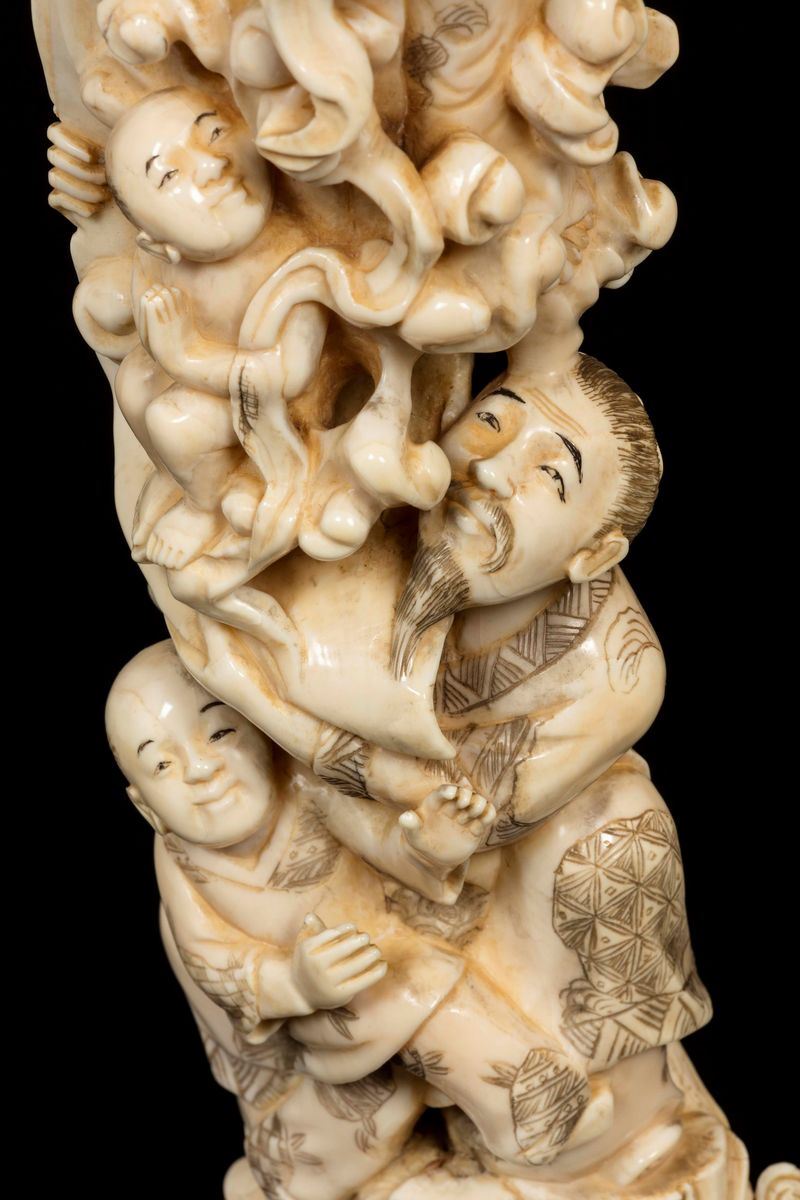A carved ivory group with figures around goddess, Japan, early 20th century