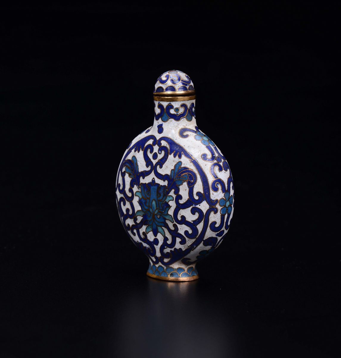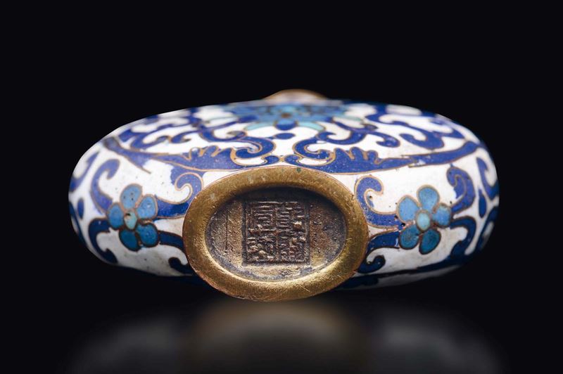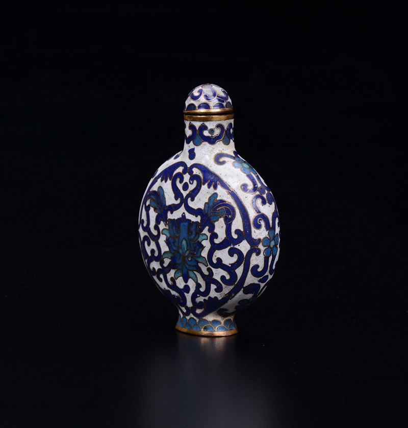 A cloisonné enamel snuff bottle with lotus flower, China, Qing Dynasty, 19th century