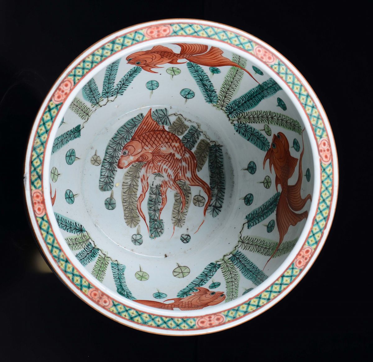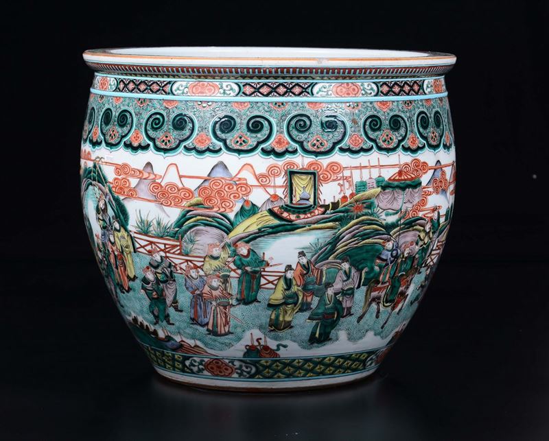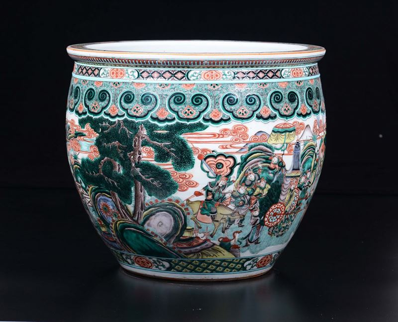A Famille-Verte cachepot with court life scenes, China, Qing Dynasty, 19th century