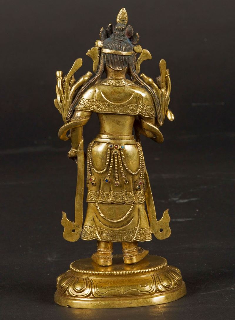 A gilt bronze figure of Amitayus with semi-precious stones inlays, China, Qing Dynasty, 18th century