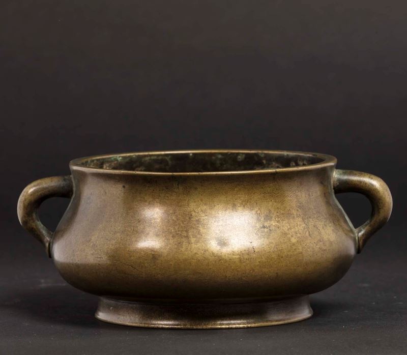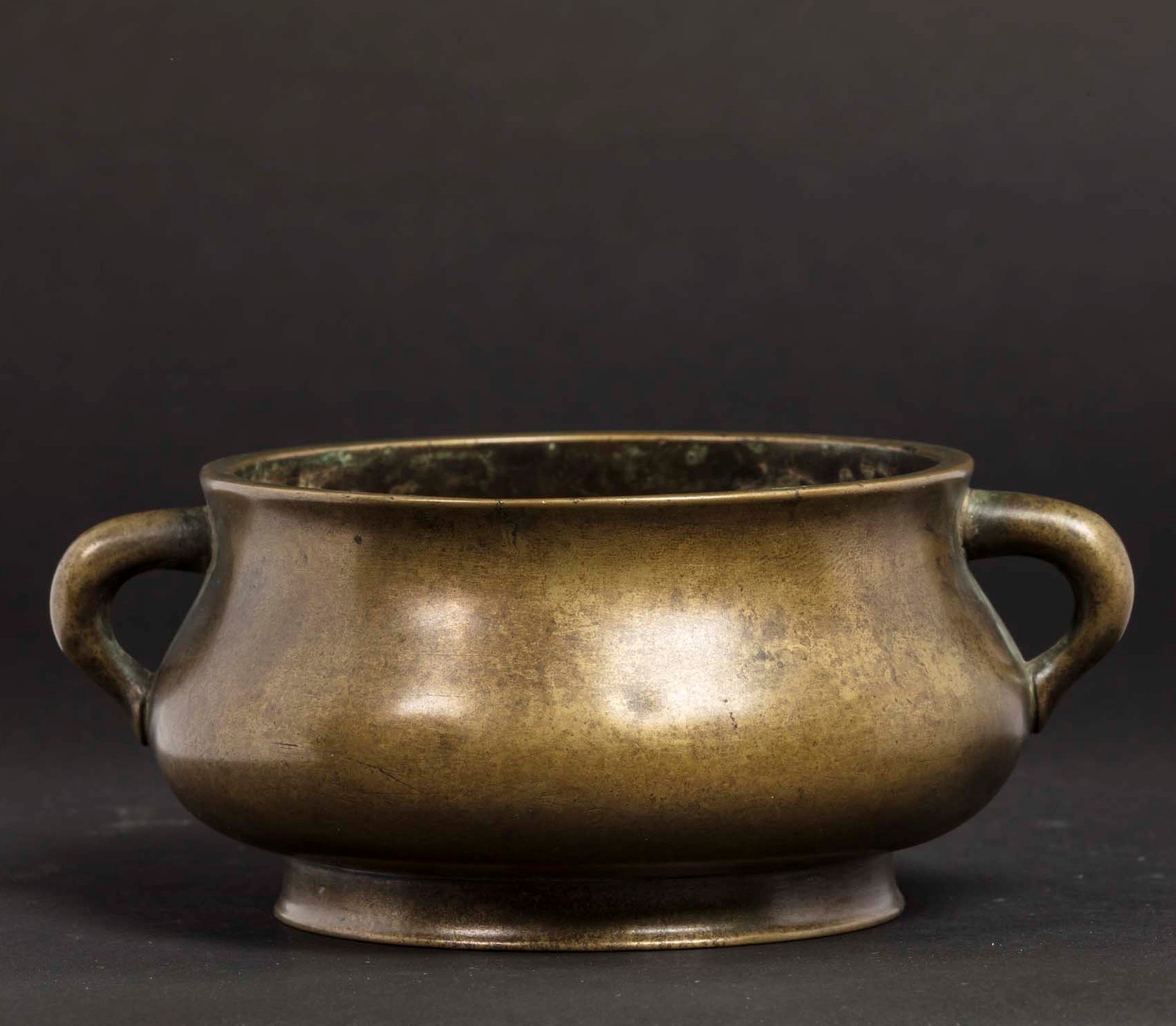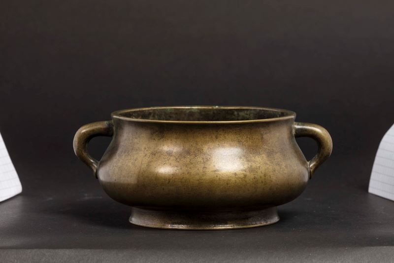 A gilt bronze two handles censer, China, Ming Dynasty, 17th century