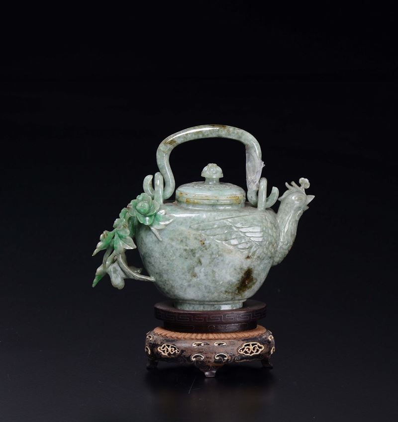A jadeite teapot with phoenix-head spout, China, early 20th century