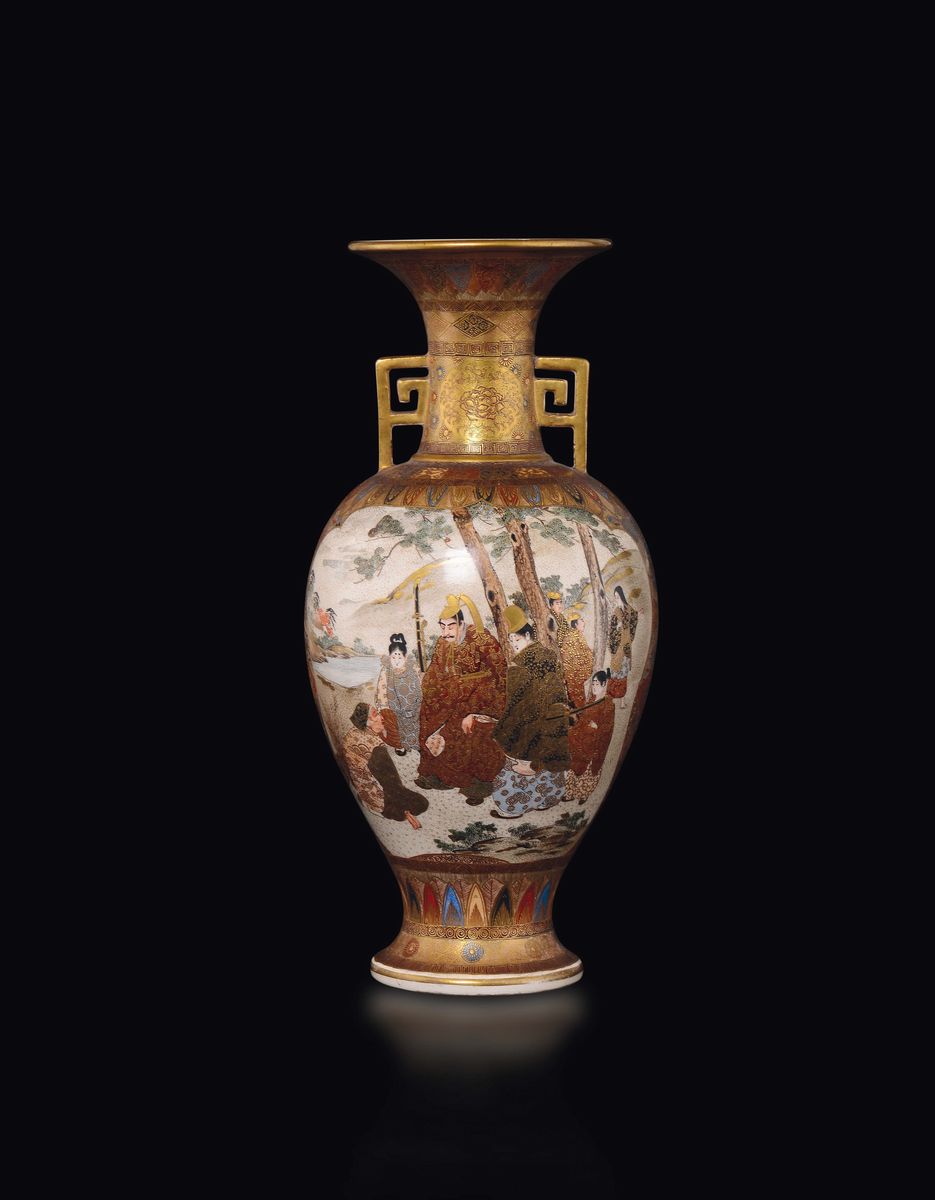 A Kutani porcelain vase with dignitaries and wise men, Japan, 19th century
