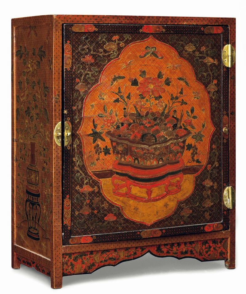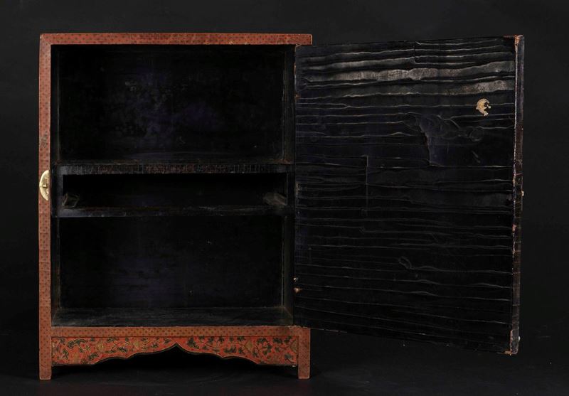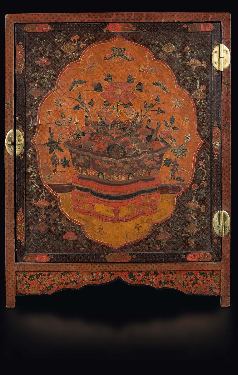 A lacquered cabinet with vases, flowers and dragon, China, Qing Dynasty, 18th century