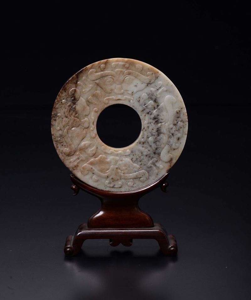 A large jade Bi with an archaic style motif, China, Ming Dynasty, 17th century