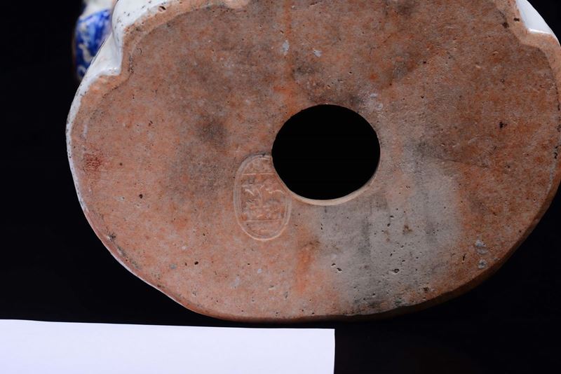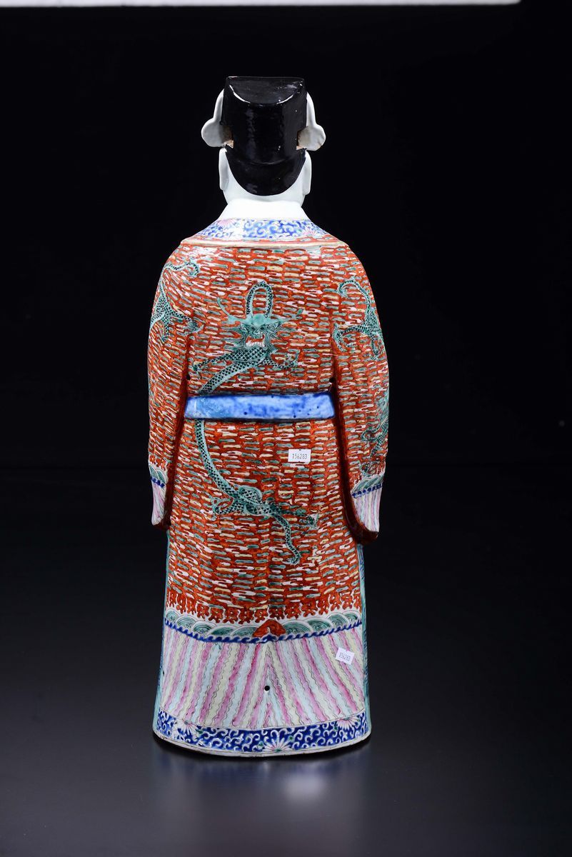 A large polychrome enamelled porcelain dignitary with ruyi, China, Qing Dynasty, 19th century
