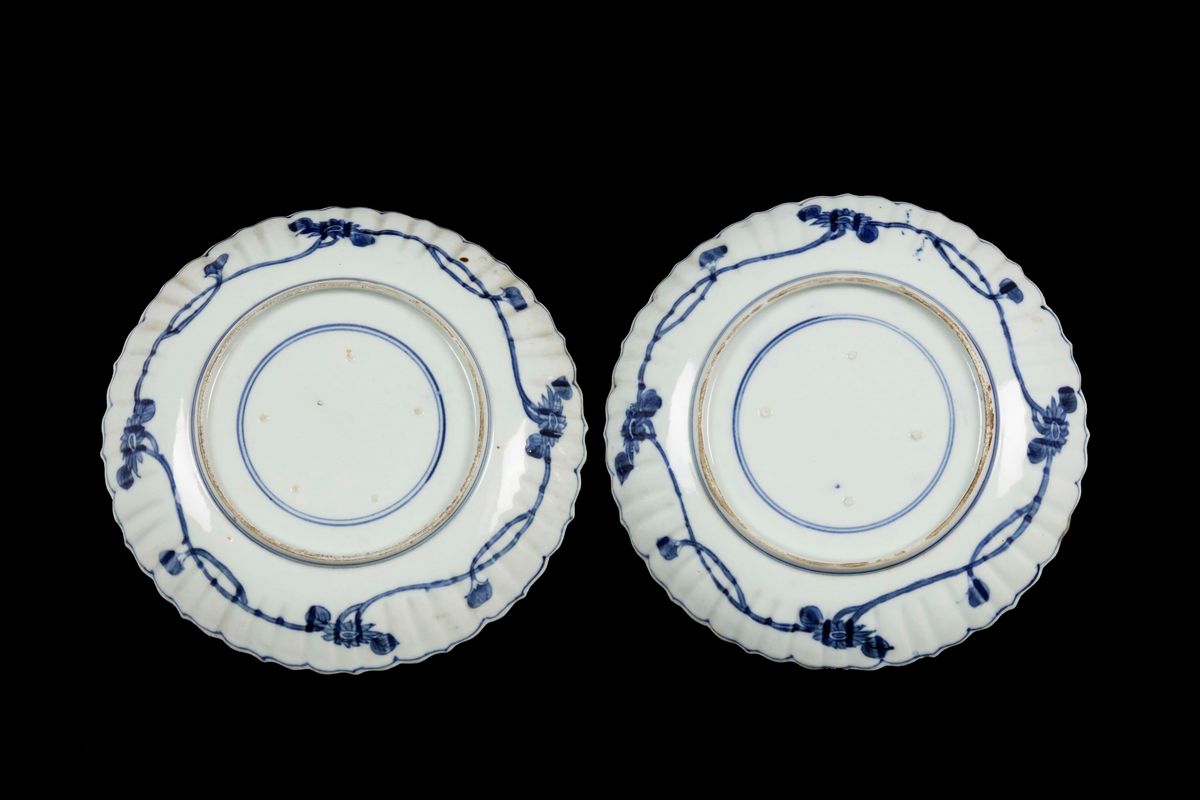 A pair of blue and white Arita dishes with hare, Japan, late 17th century