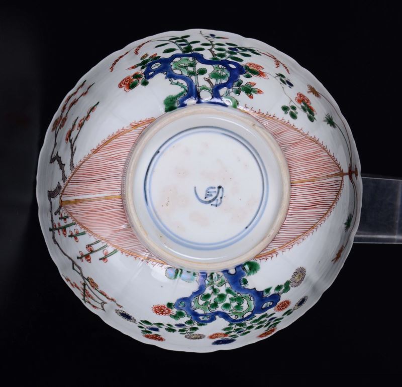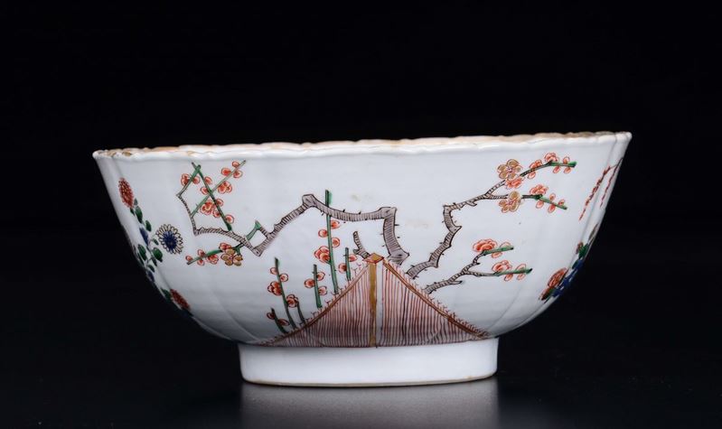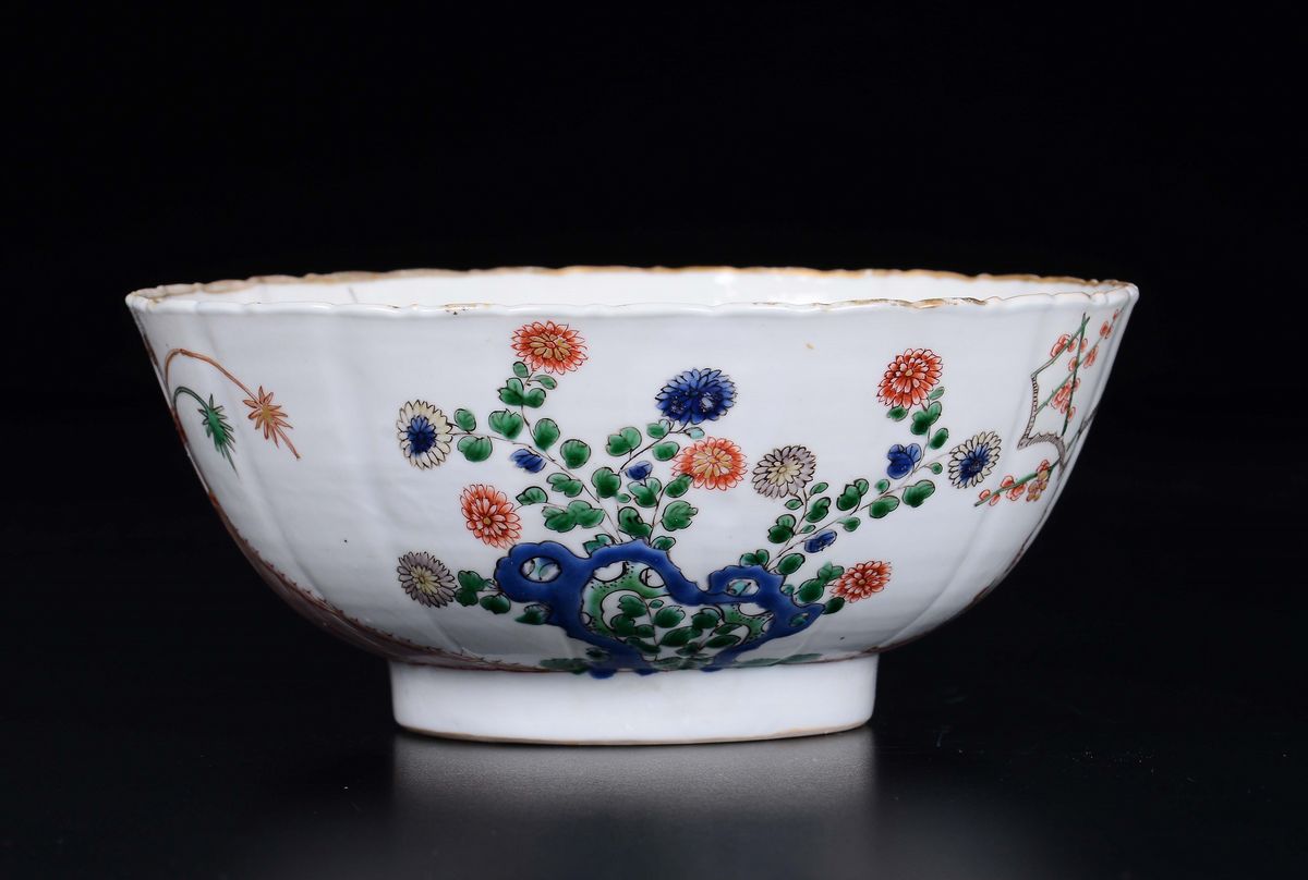 A polychrome enamelled porcelain bowl with naturalistic decoration, China, Qing Dynasty, Kangxi Period (1662-1722)