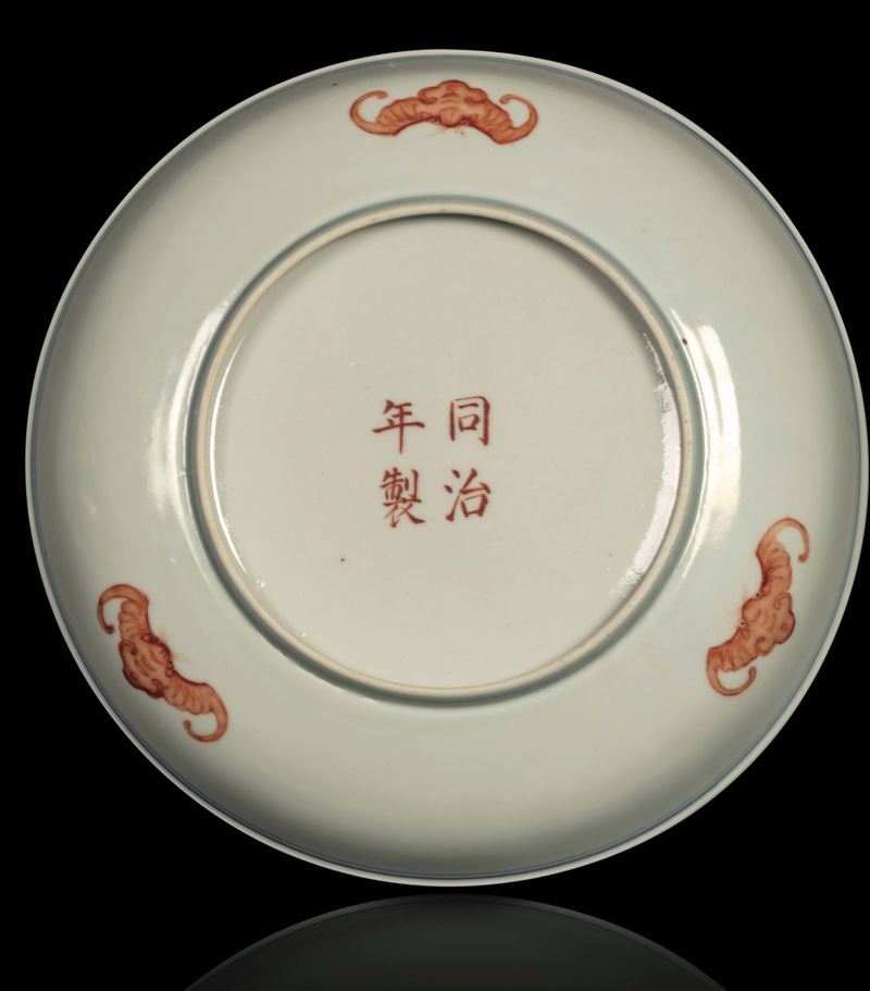 A polychrome enamelled porcelain dish with lotus flowers, China, Qing Dynasty, 19th century