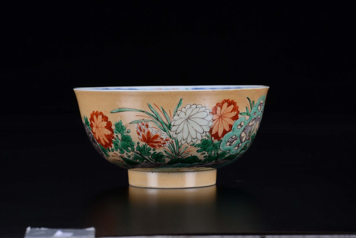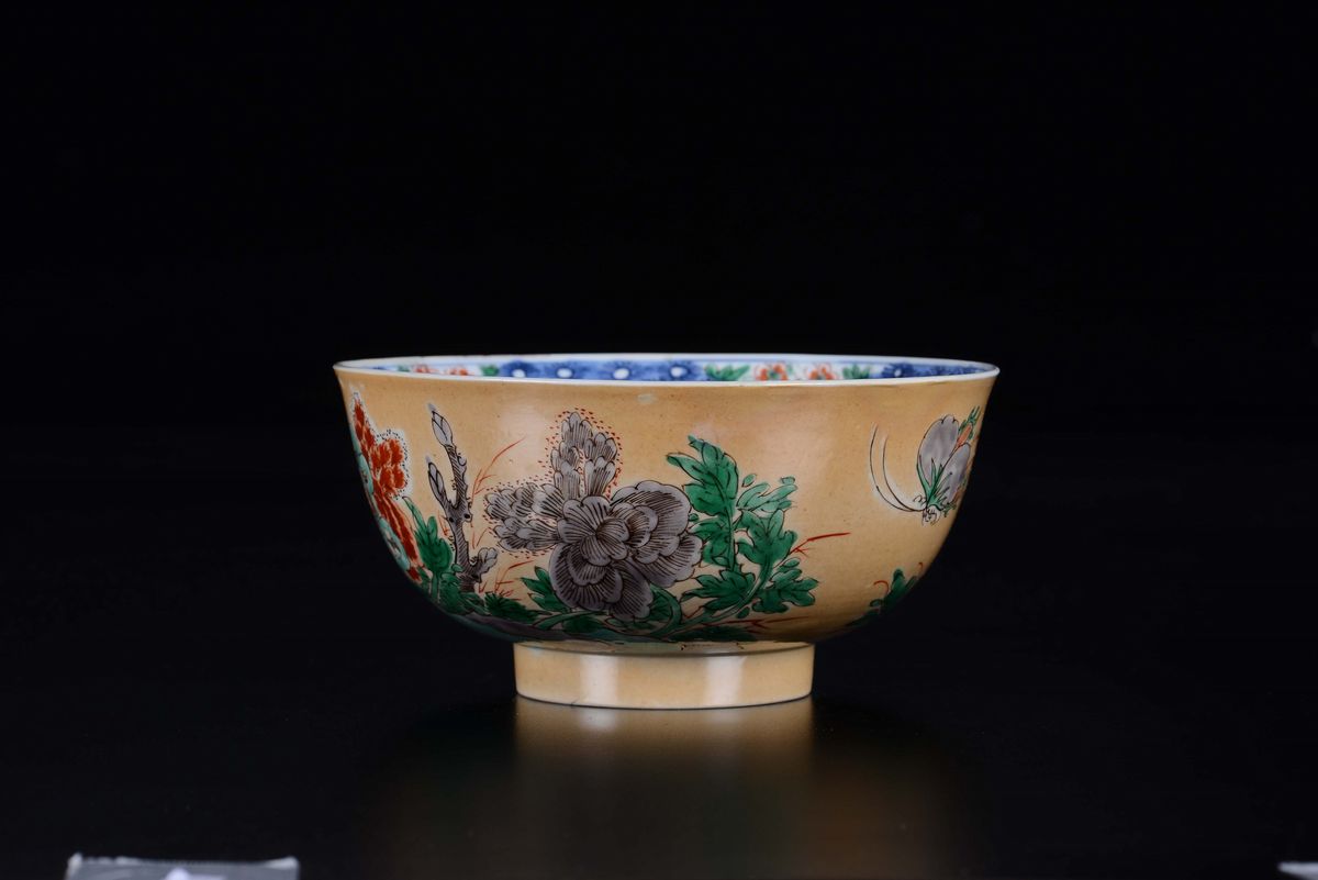A polychrome enamelled yellow-ground porcelain bowl with naturalistic decoration, China, Qing Dynasty, Kangxi Period (166 [..]